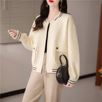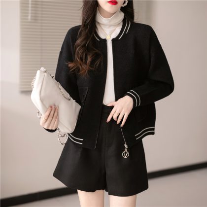 | nameOriginal | Imitation Double-Sided Woven Knitted Coat Women's 2023 Autumn New Style Zipper Baseball Suit Short Cardigan Half Crewneck Top Trendy |
