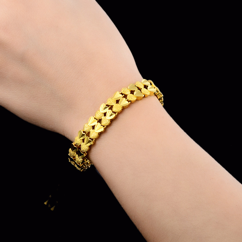 | nameOriginal | Imitation gold jewelry, fashionable and popular Japanese and Korean exquisite women's bracelets, gold-plated double heart-shaped bracelets, wedding accessories |