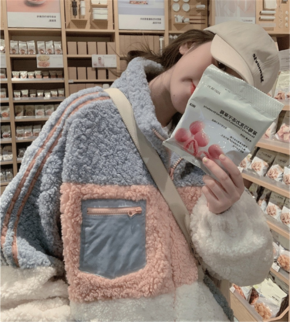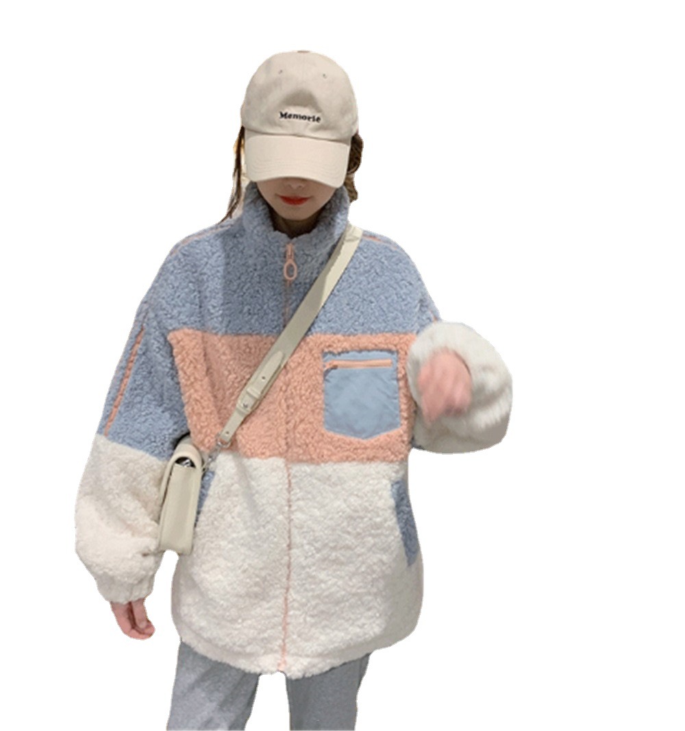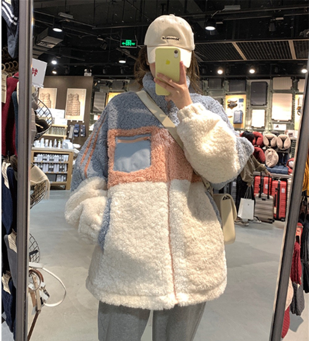 | nameOriginal | Imitation lamb wool contrast stitching stand collar coat autumn and winter plus velvet loose cardigan jacket cross-border Women's foreign trade Wholesale |