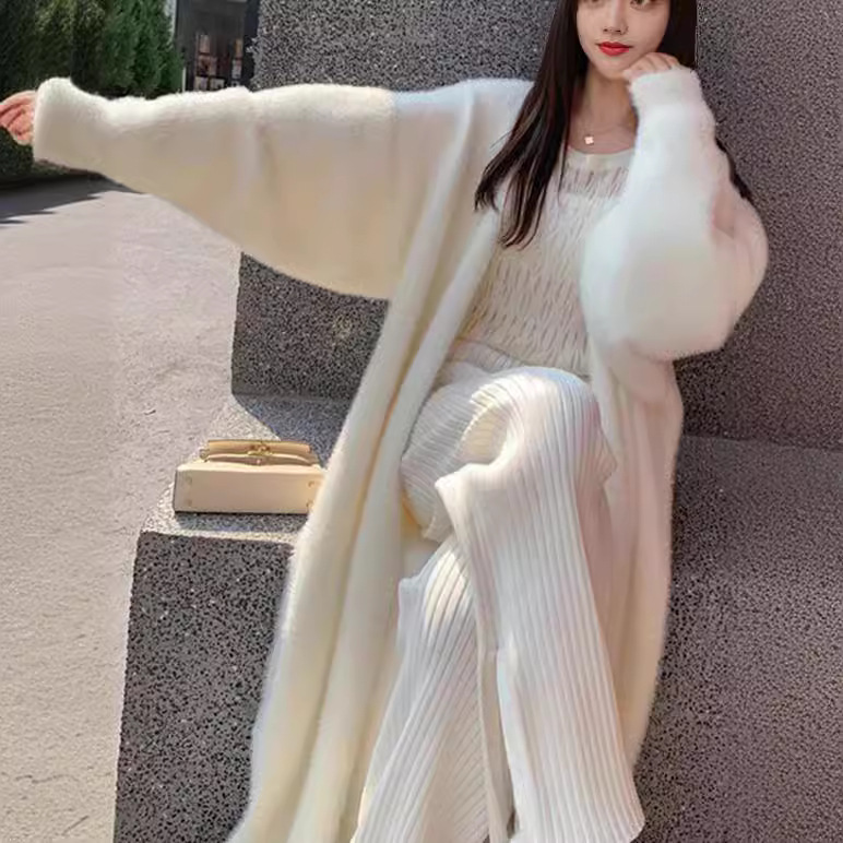 | nameOriginal | Imitation mink velvet knitted cardigan 2024 autumn and winter new Korean lazy wind knee long thick sweater coat coat |