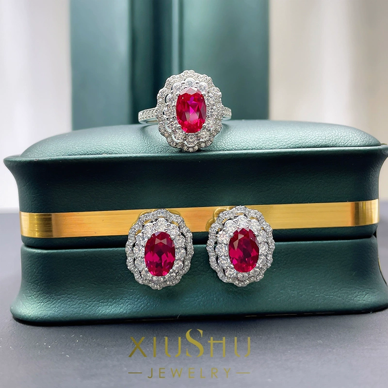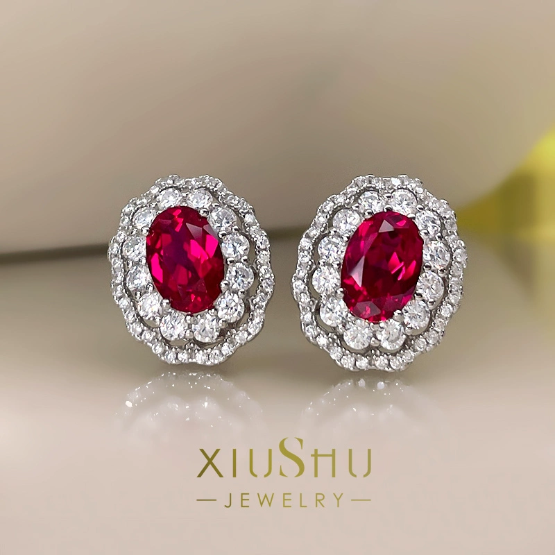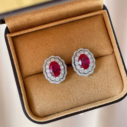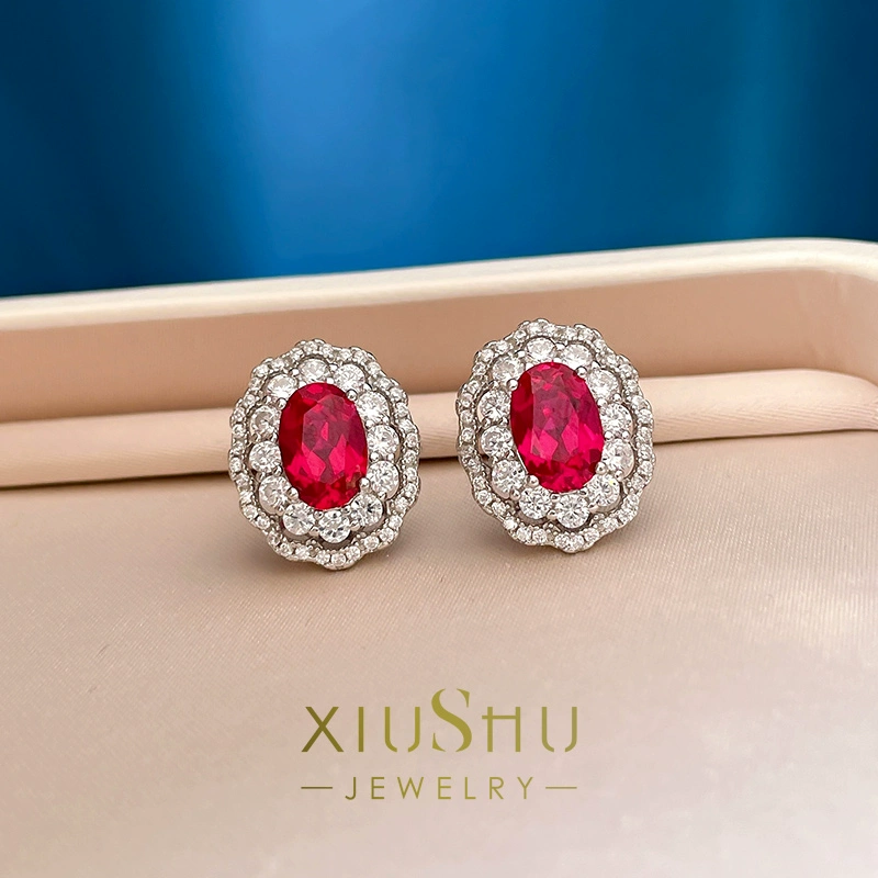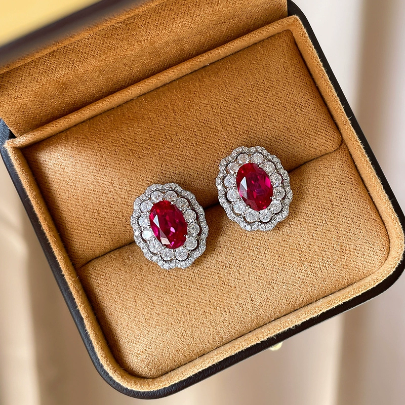 | nameOriginal | Imitation pigeon blood ruby red flower earrings light luxury high-end sterling silver exquisite small retro |