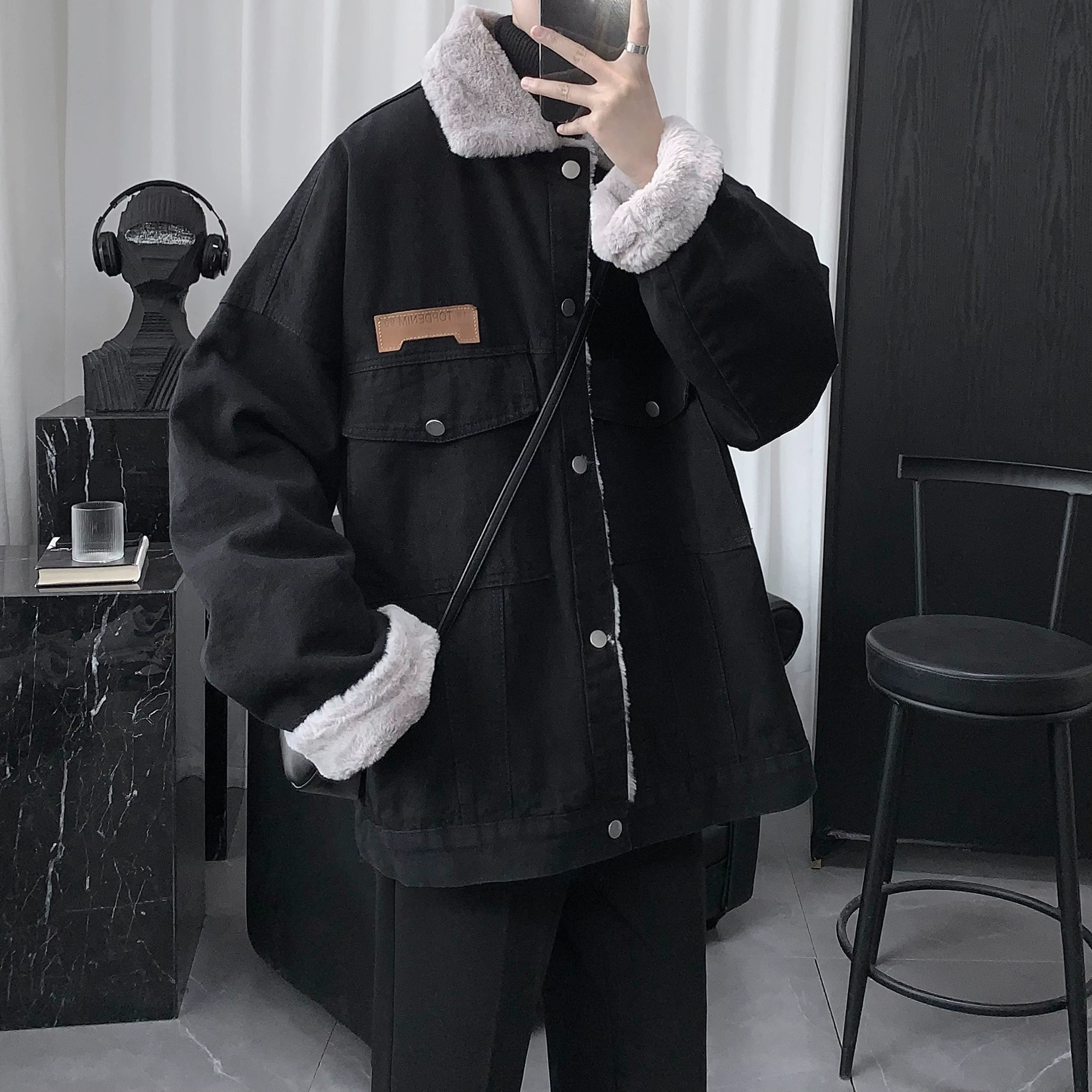 | nameOriginal | Imitation rabbit fur winter lapel warm cotton denim jacket |
