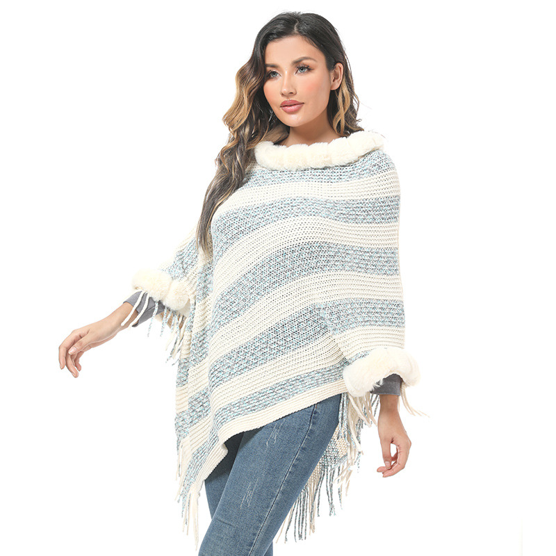 Imitation Rex rabbit fur collar knitted pullover Cape women chenille warm foreign trade spot wholesale striped shawl sweater