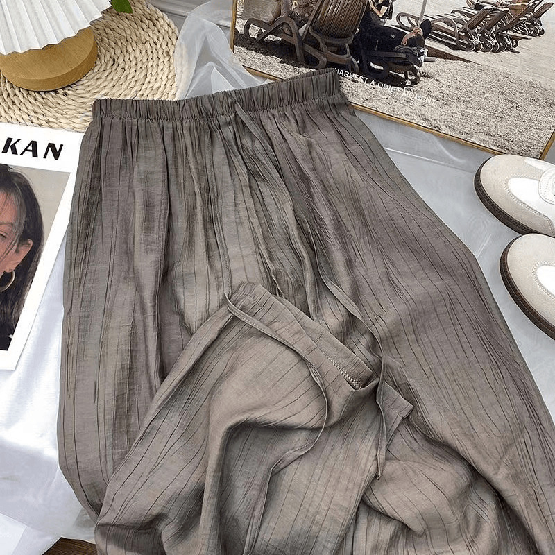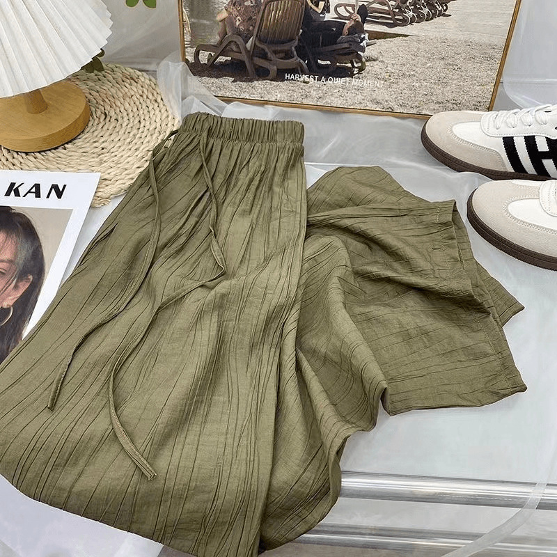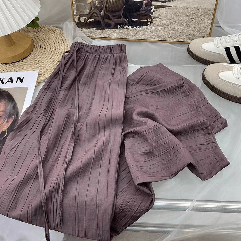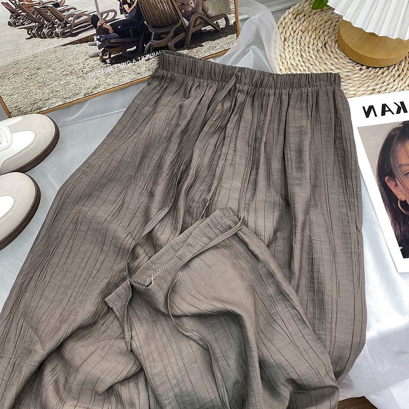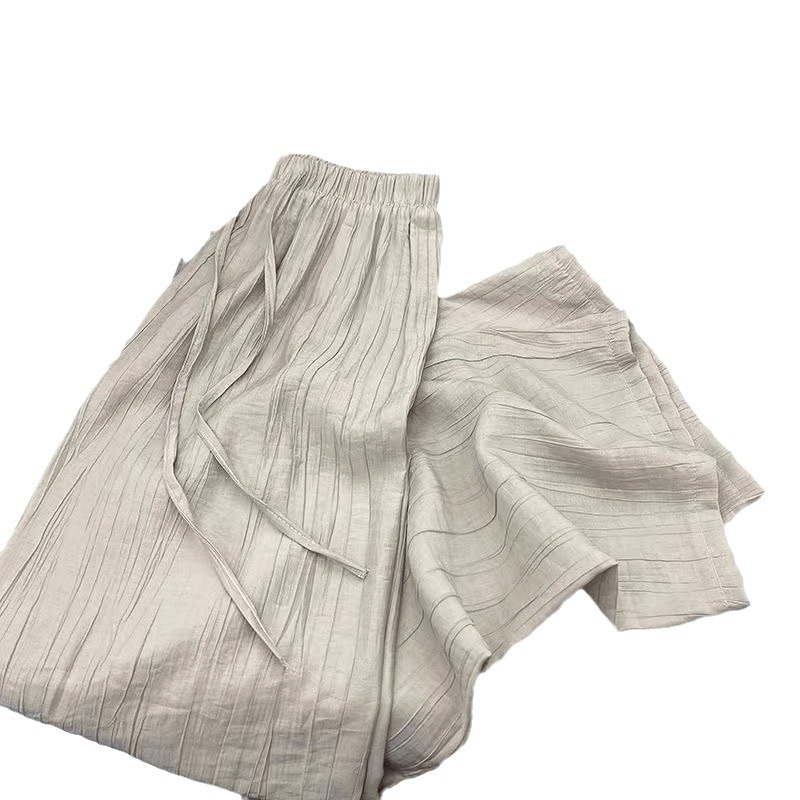 | nameOriginal | Imitation Tencel Wide Leg Pants Women's Small Loose Pleated Straight Tube Drape Summer Sun Protection Pants Ice Silk Casual Pants |