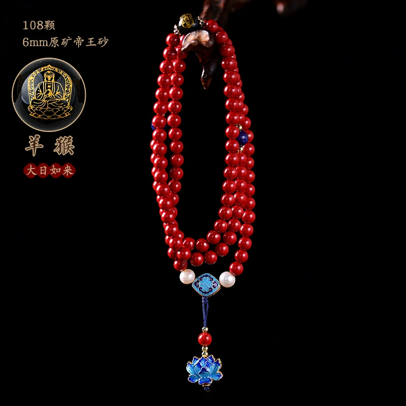 | nameOriginal | Imperial Red Cinnabar Zodiac Buddha Bracelet for Women 108 Buddha Beads Chain Multi-circle Immovable Ming King Retro Jewelry |