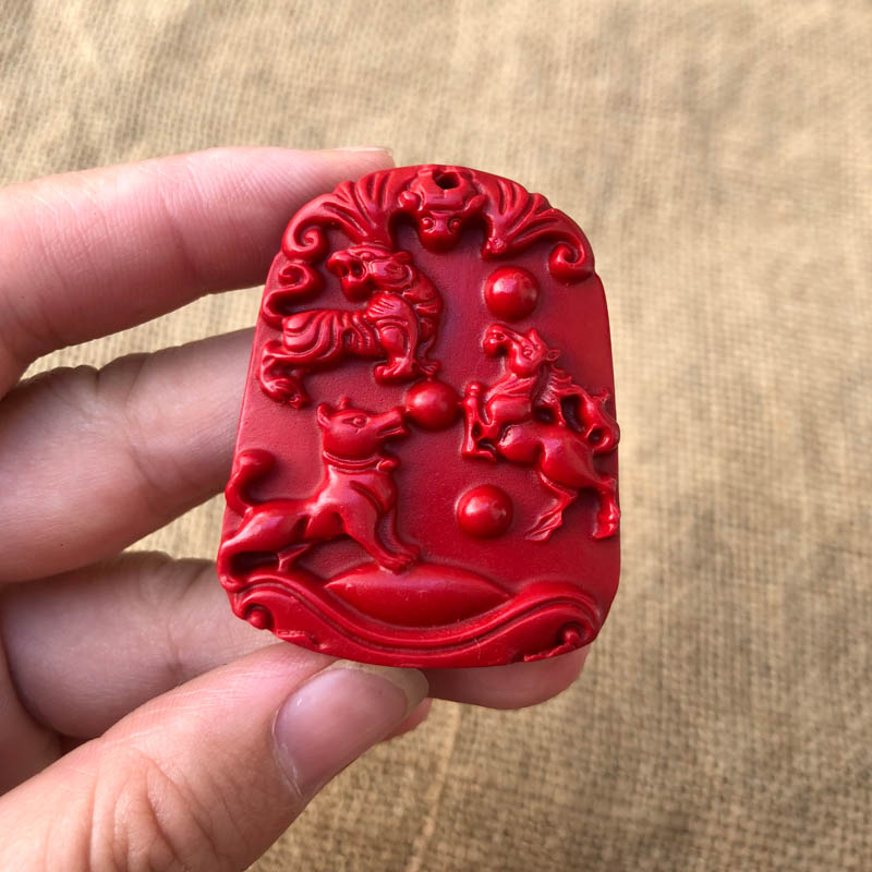 Imperial Red Tiger Horse Dog Jade Pendant Necklace Taiwan Original Color Cinnabar Triple Zodiac Pendant Transfer Pendant Certificate