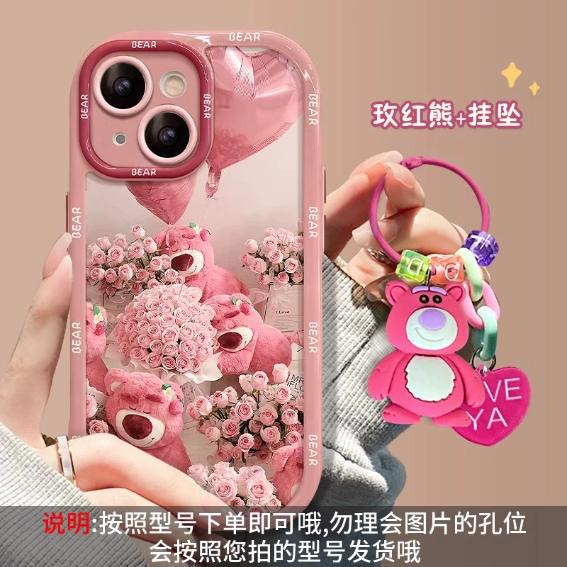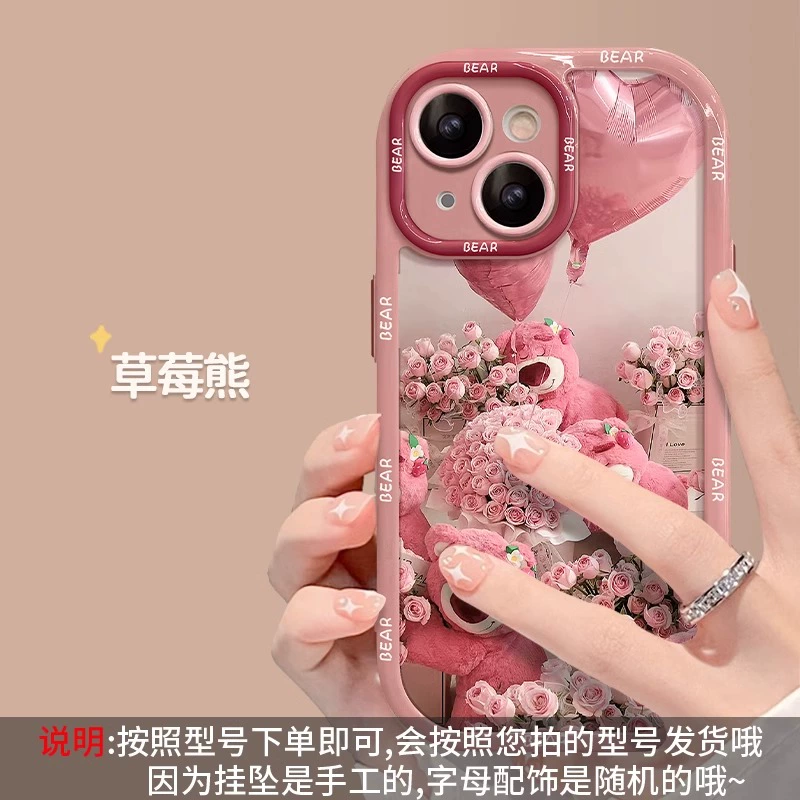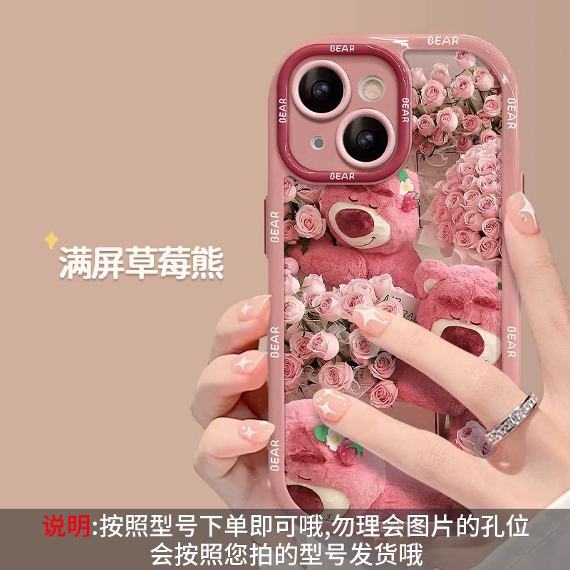 | nameOriginal | [Imported silicone] Rose Strawberry Bear is suitable for Apple 15promax mobile phone case iPhone16pro painted x high-end 14promax protective cover anti-fall women 13 fashion 12 new style 11 |