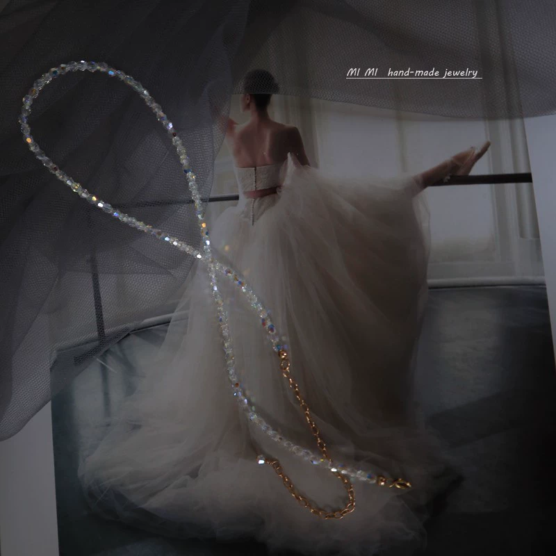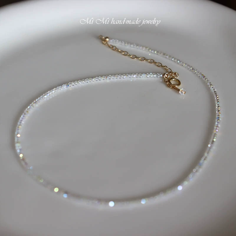 | nameOriginal | Imported Swarovski crystal ultra-fine necklace choker thin collar 14K gold injection women's clavicle chain necklace champagne color |