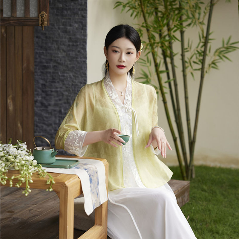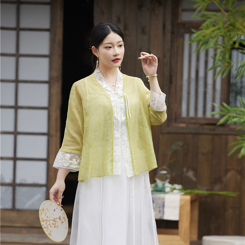 | nameOriginal | Improved Hanfu Retro 2023 Spring and Summer New Chinese Style Zen Tea Clothing Cardigan Artistic Jacquard Top |