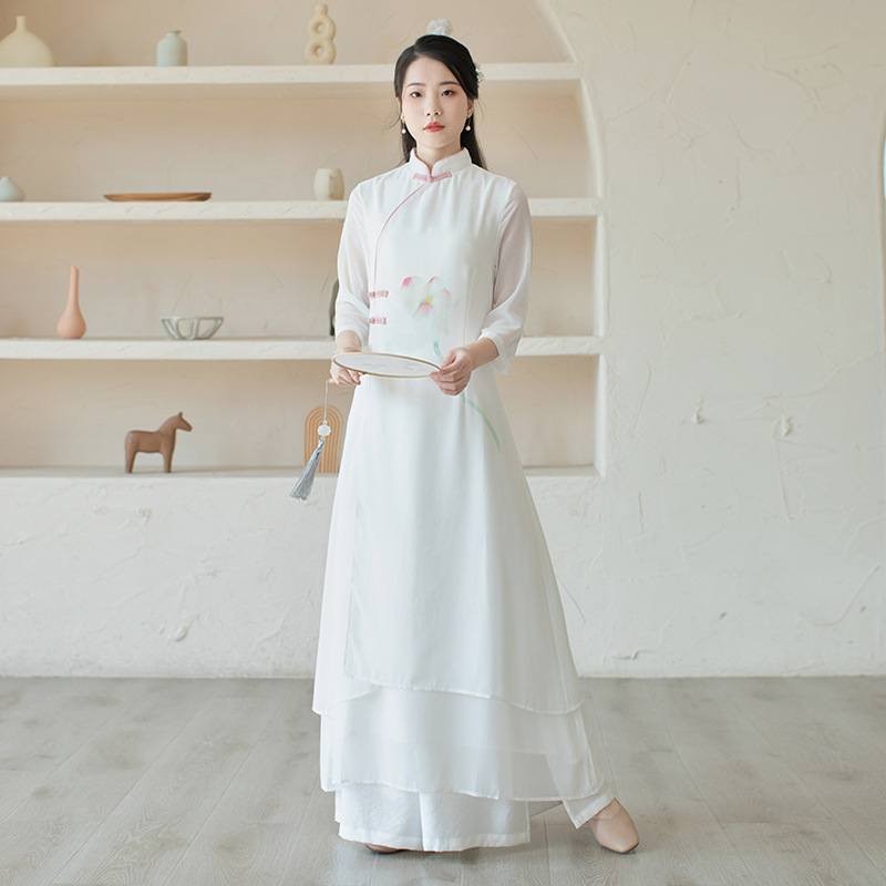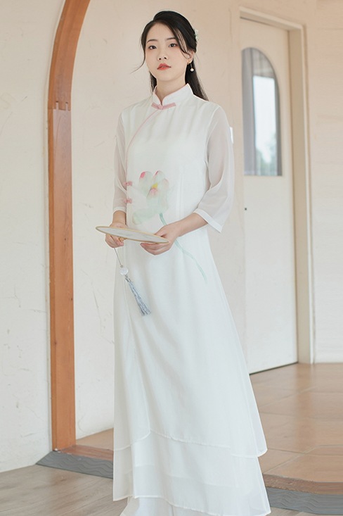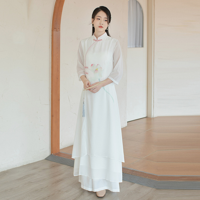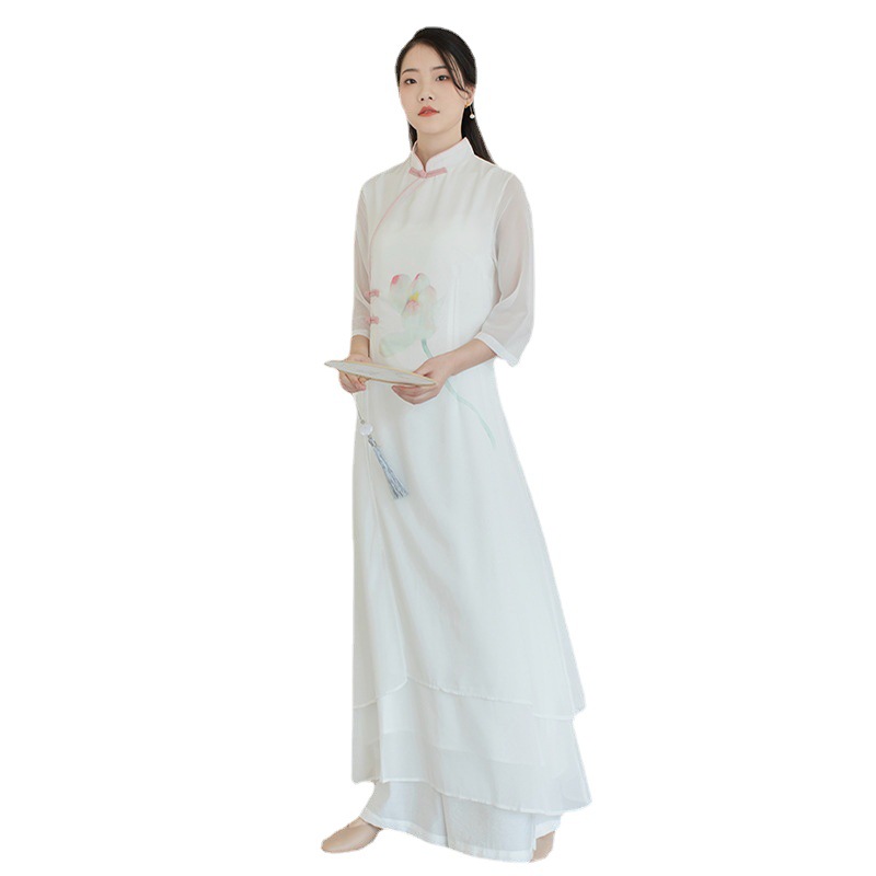 | nameOriginal | Improved Hanfu Women's Chinese Style Tang Suit Cheongsam Dress Spring and Summer White Fairy Zen Tea Long Dress |