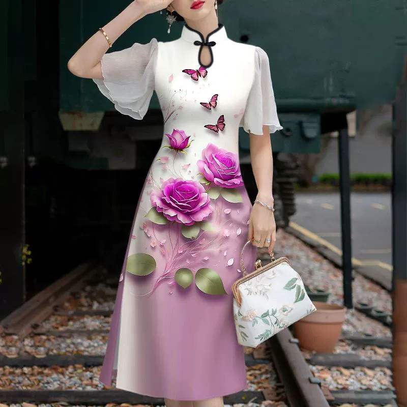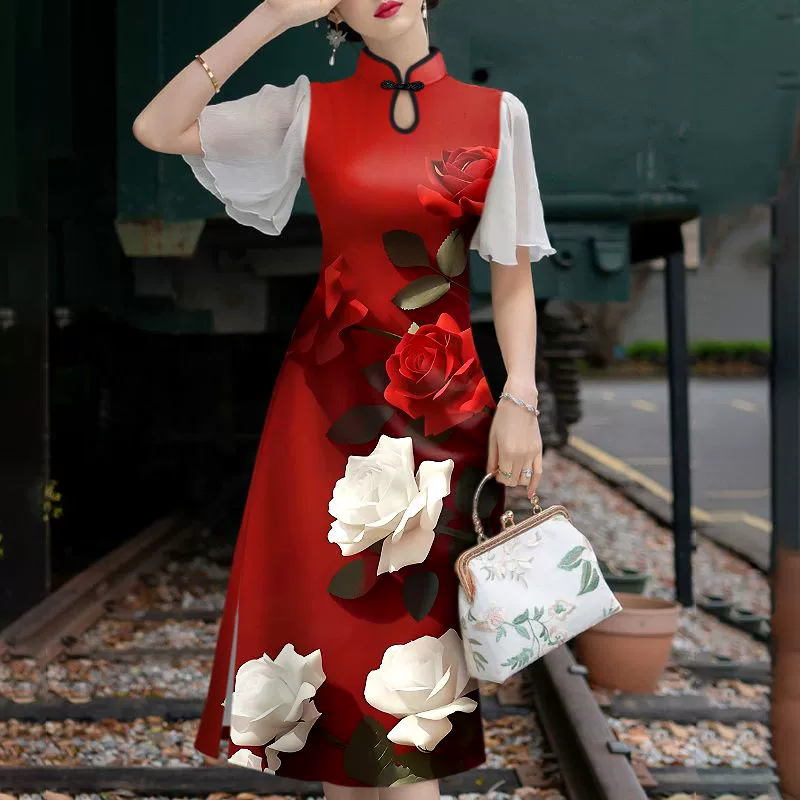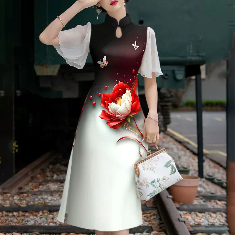 | nameOriginal | Improved youthful slit fresh cheongsam dress with inverted large sleeves |