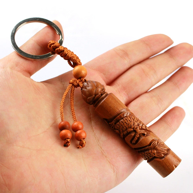 | nameOriginal | In 2024, people born in the Year of the Rooster will wear peach wood carved Xianglong Xuanlong Wangzun Town Tower keychain pendant. |