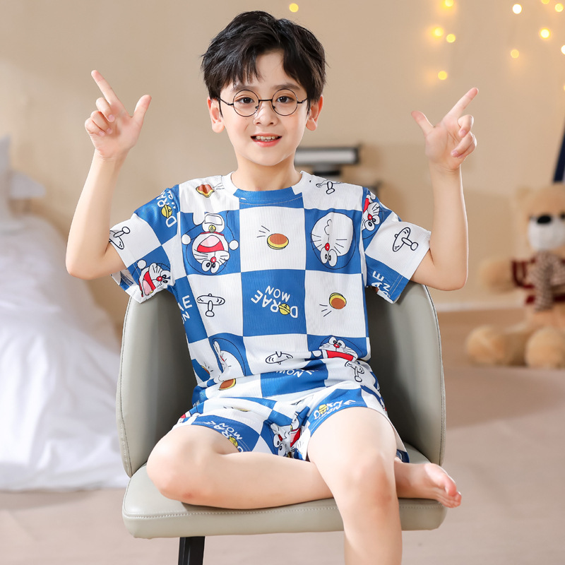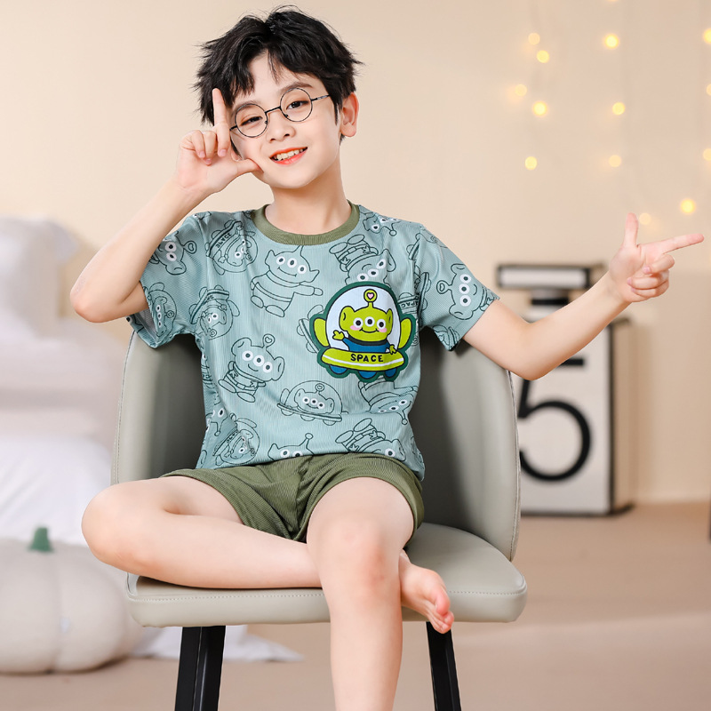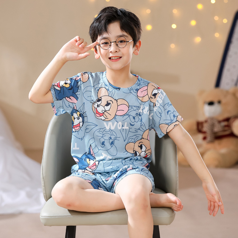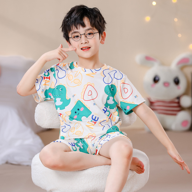 | nameOriginal | In-laws Boys' Pajamas Threaded Ice Silk Children's Summer Thin Air Conditioning Boys Big Children's Short-sleeved Home Clothes suit |