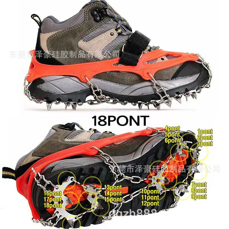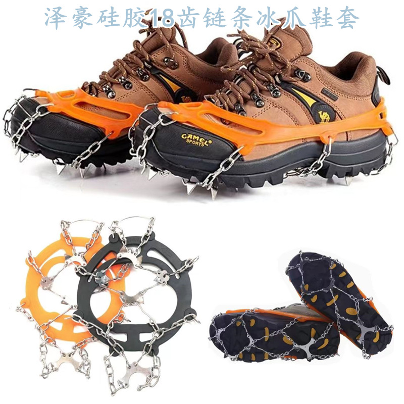 | nameOriginal | In stock 18 tooth chain silicone crampons wholesale outdoor mountaineering stainless steel chain crampons non-slip shoe cover snow claw |