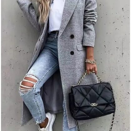 In stock 2023wish Amazon hot sale autumn and winter solid color woolen mid-length coat female W182