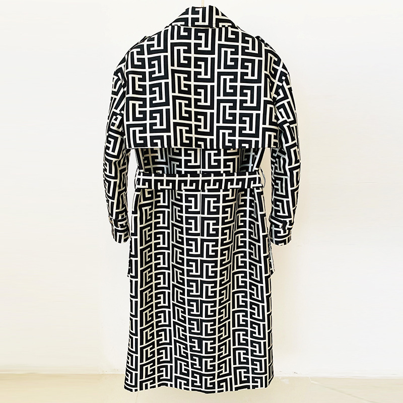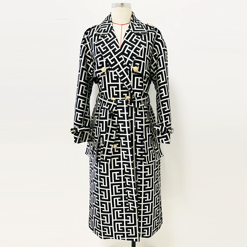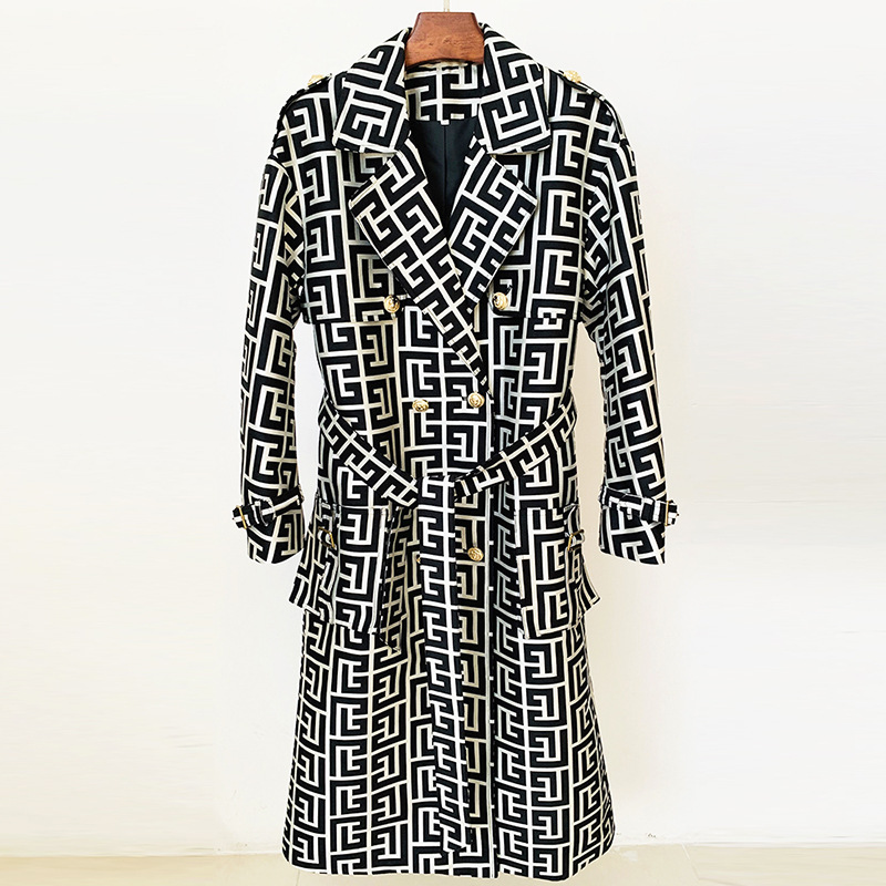 | nameOriginal | In stock 2024 autumn and winter New coat European and American metal button double breasted belt geometric Plaid extended trench coat |