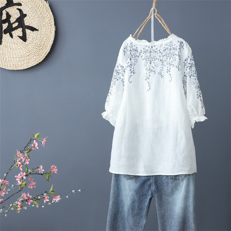 | nameOriginal | in stock 2024 Early Spring 5-point Sleeve Embroidery Stitching Aunt's Women's Casual Art All-match Base Shirt |