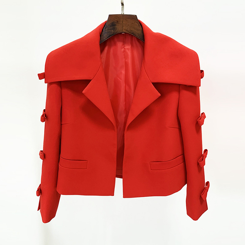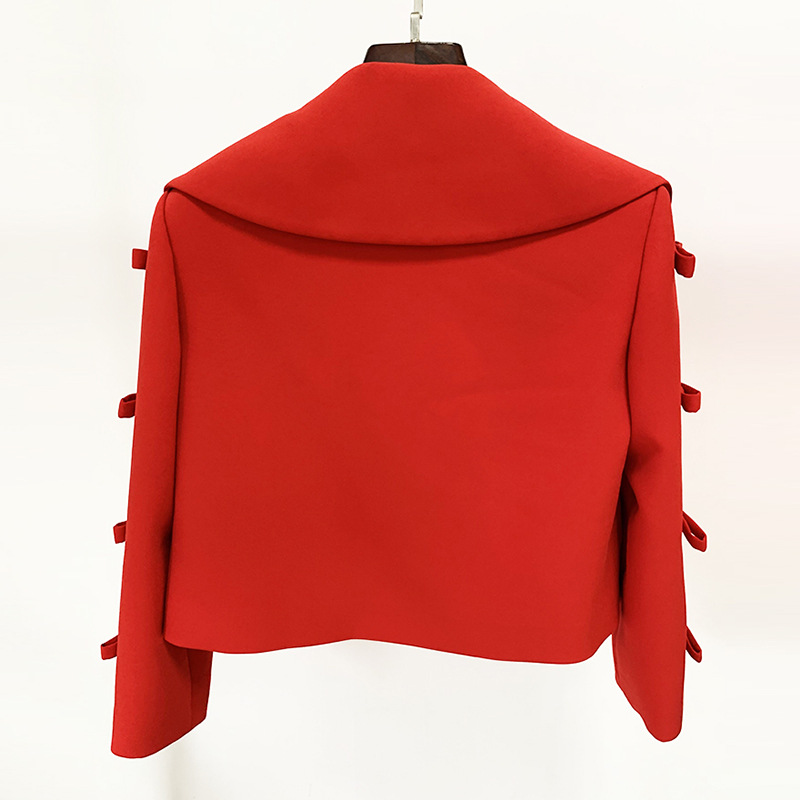 | nameOriginal | In stock 2024 early spring new European and American star fashion hollow bow 3/4 sleeve short cardigan jacket coat |