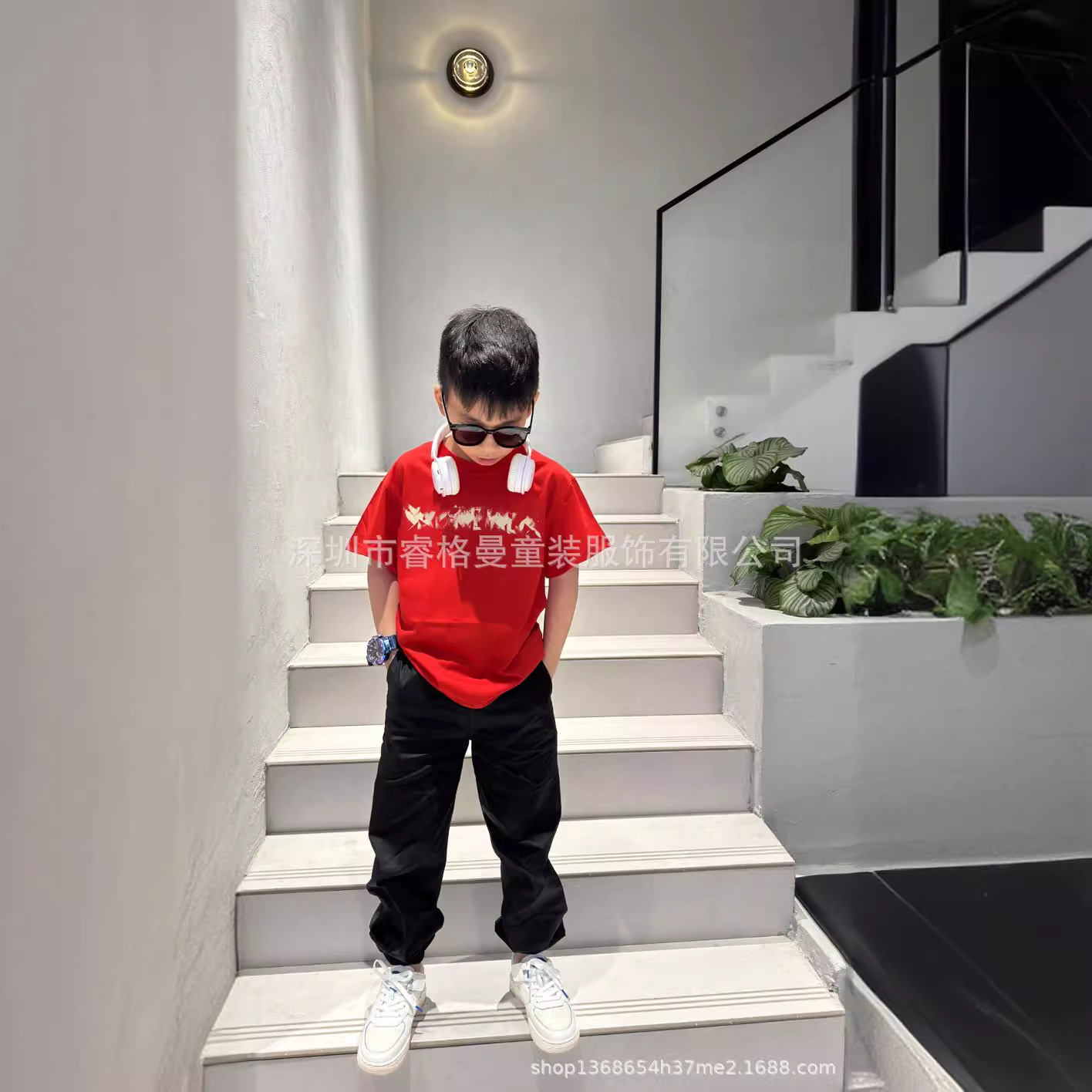 | nameOriginal | In stock 2024 new black children's T-shirt versatile casual boys and girls round neck short sleeve t-shirt |