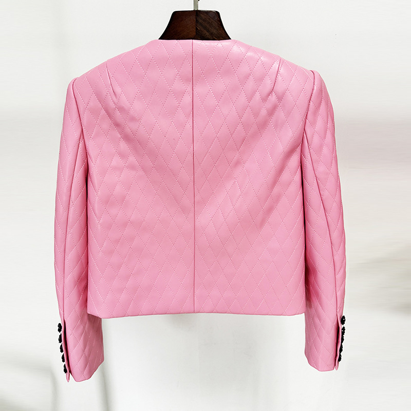 in stock 2024 New European and American Star Fashion Flower Decorative Rose Buckle Diamond Plaid Leather Short Jacket Coat