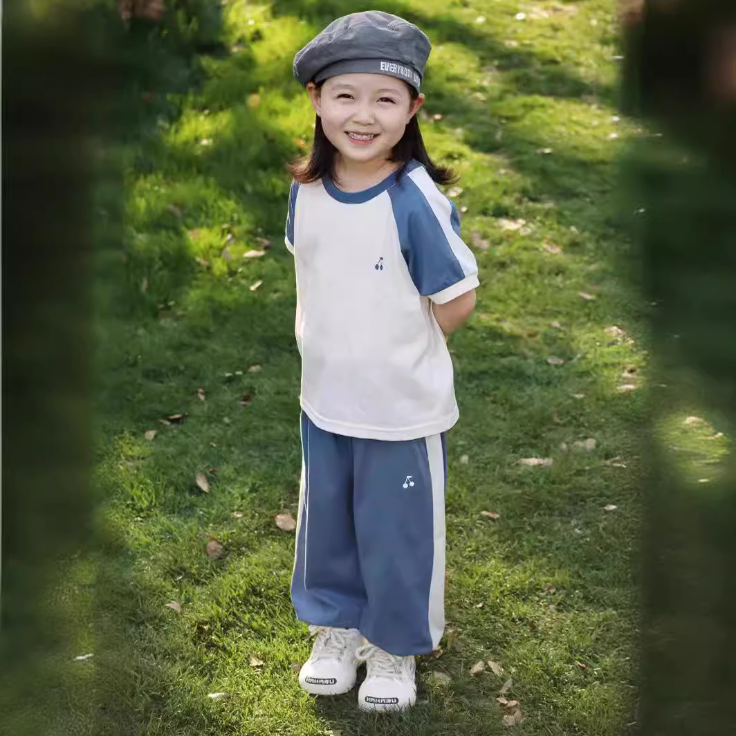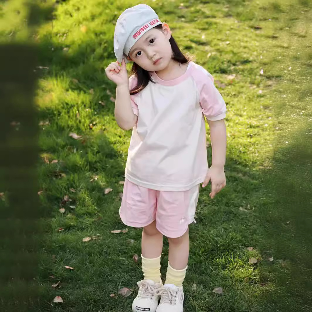 in stock 2024 Spring and Summer Children’s Short-sleeved Short Trousers Knitted Three-piece Set Girl’s Casual Ice Silk Draped Cotton suit