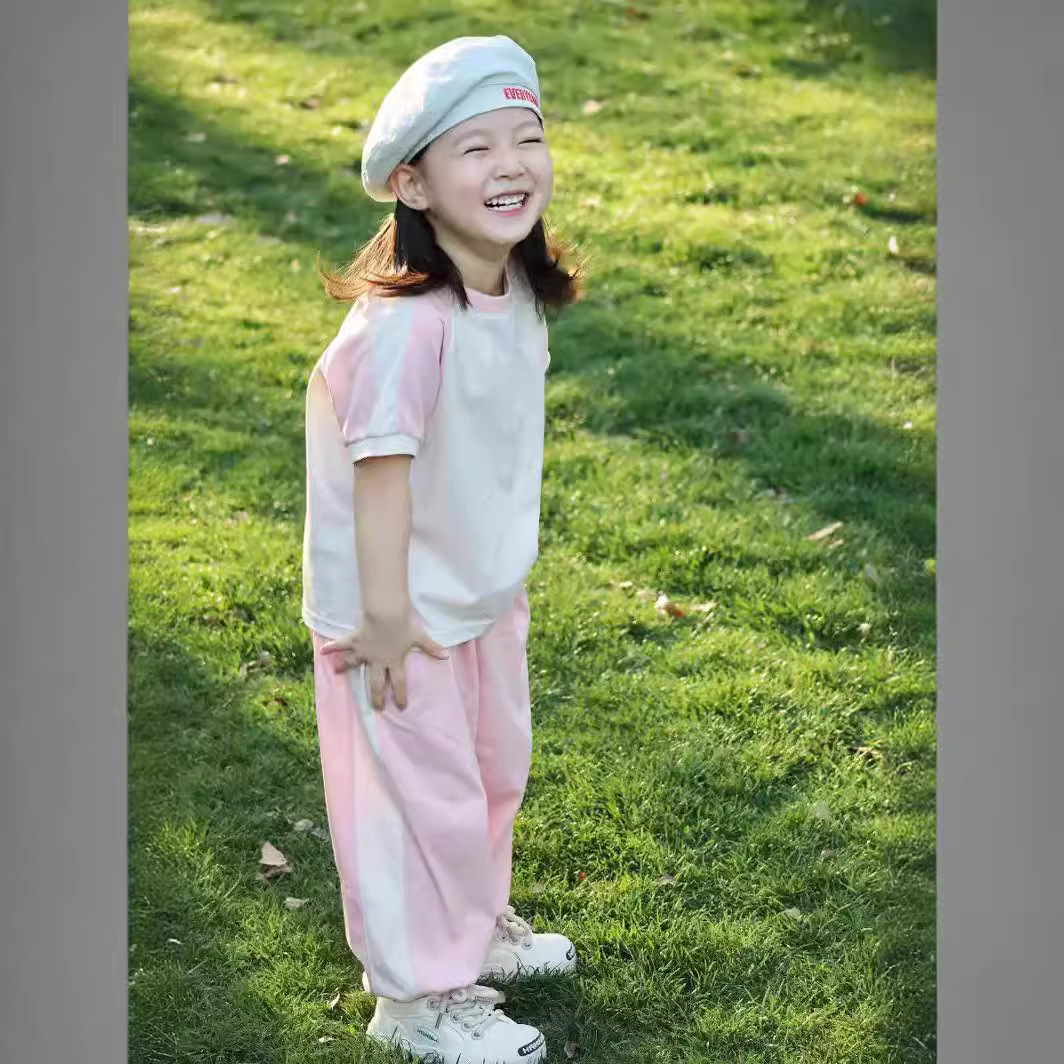 in stock 2024 Spring and Summer Children's Short-sleeved Short Trousers Knitted Three-piece Set Girl's Casual Ice Silk Draped Cotton suit