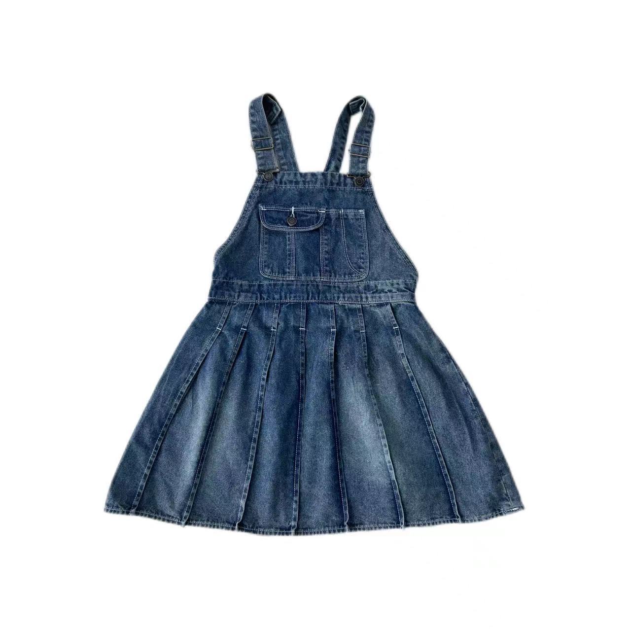 | nameOriginal | in stock 2024 Spring and Summer Girl's Old Full Spray Retro Blue Heavy Industry Pleated Skirt Denim Strap dress Four Seasons |