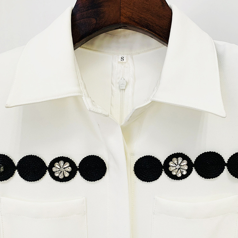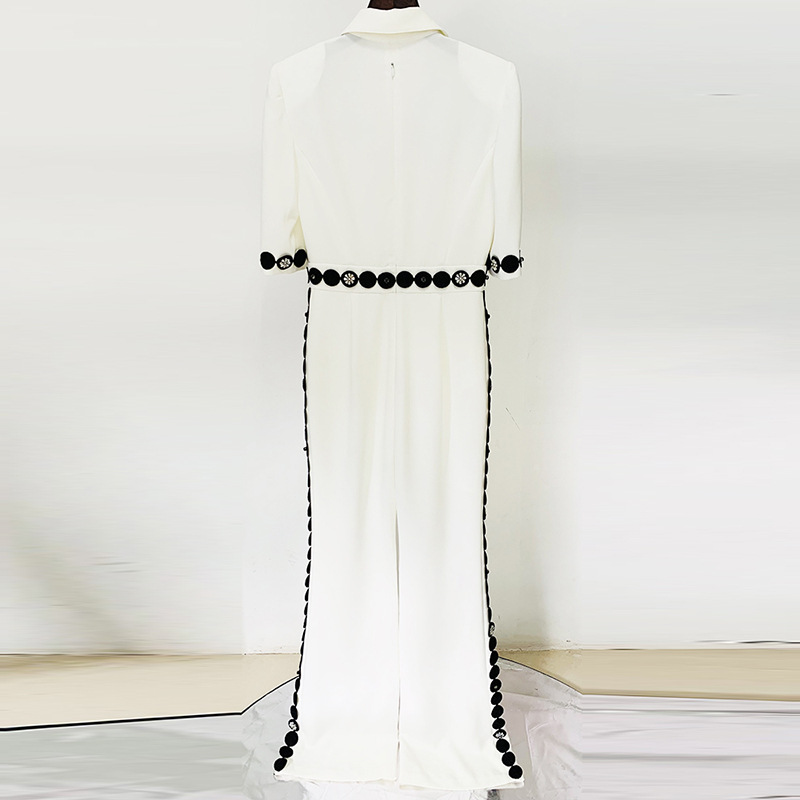 | nameOriginal | In stock 2024 spring and summer new European and American star fashion five-quarter sleeve shirt collar round cake embroidery beaded jumpsuit |