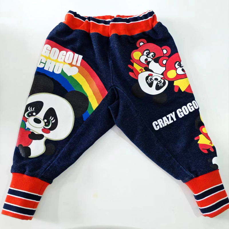 | nameOriginal | In stock 2024 spring new children's jeans for boys and girls children full printed bear Denim trousers |