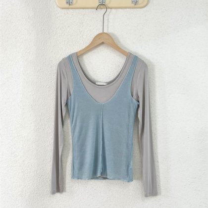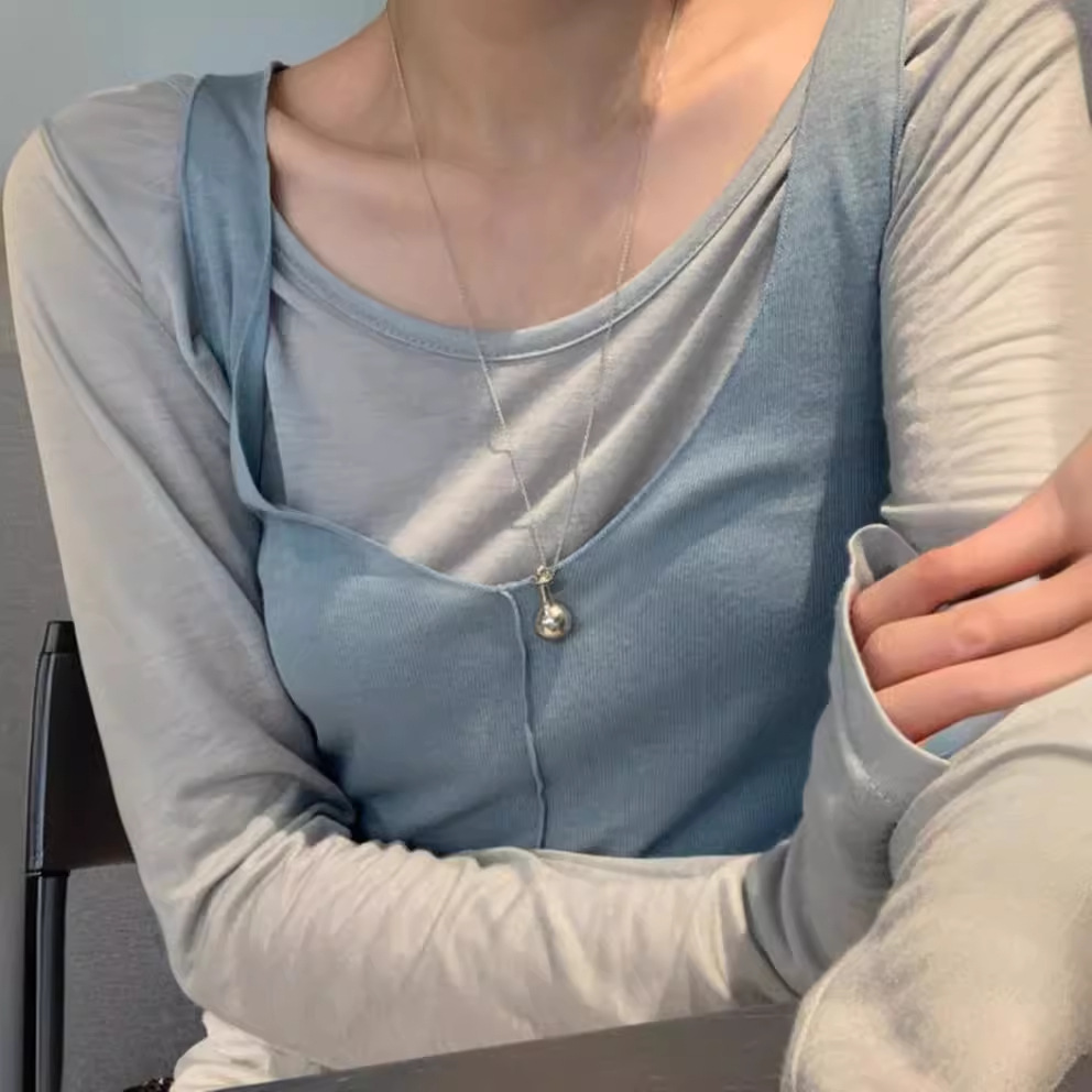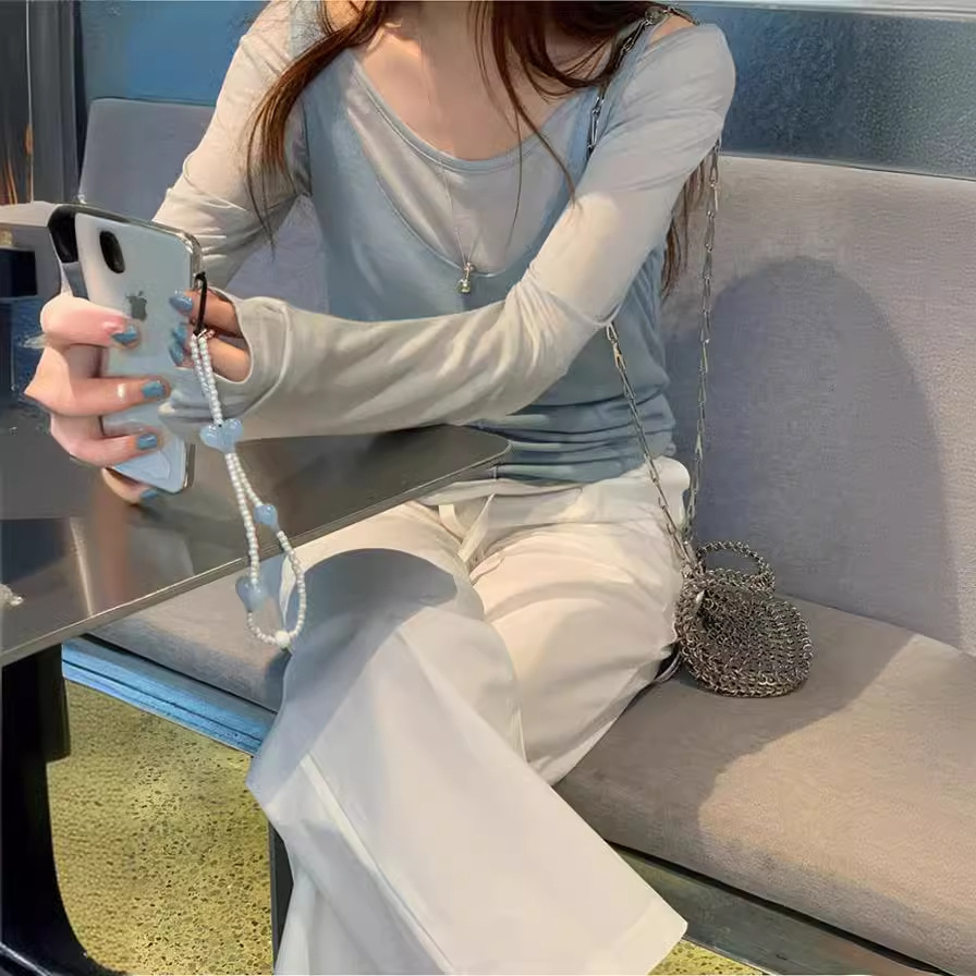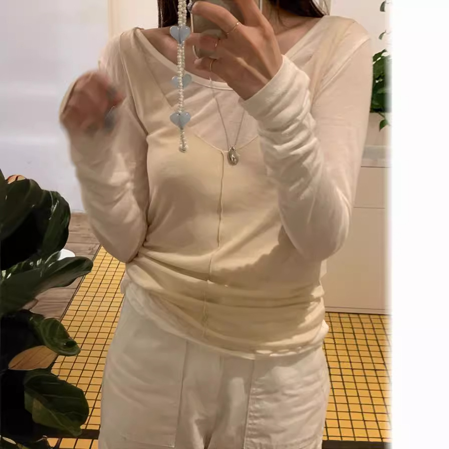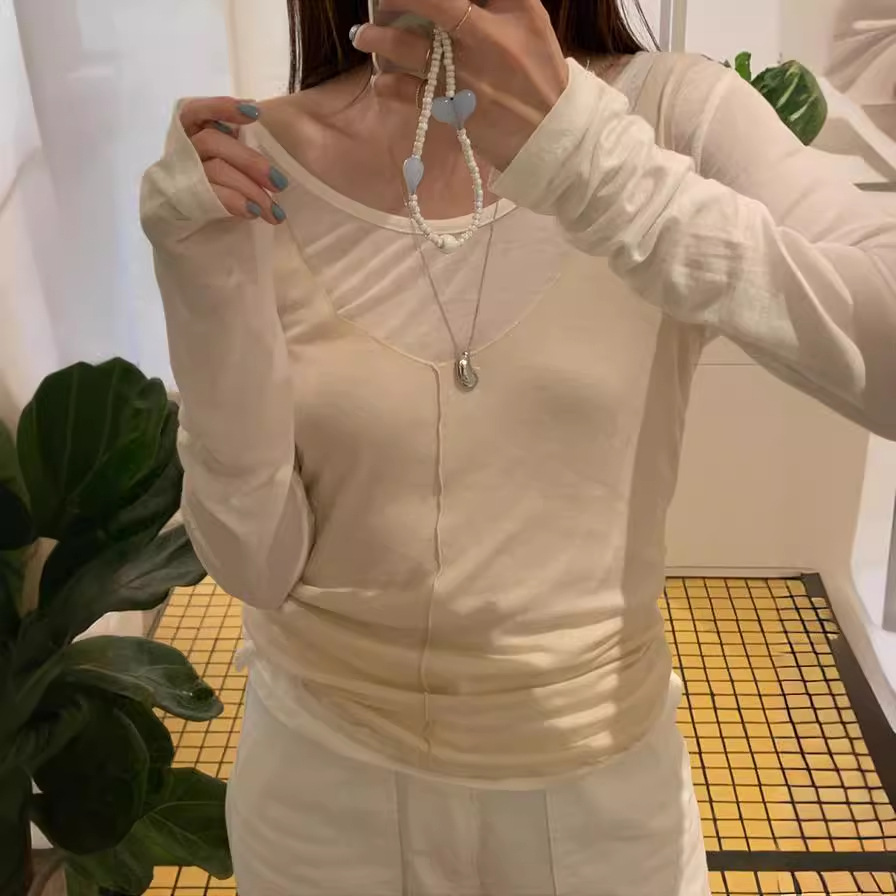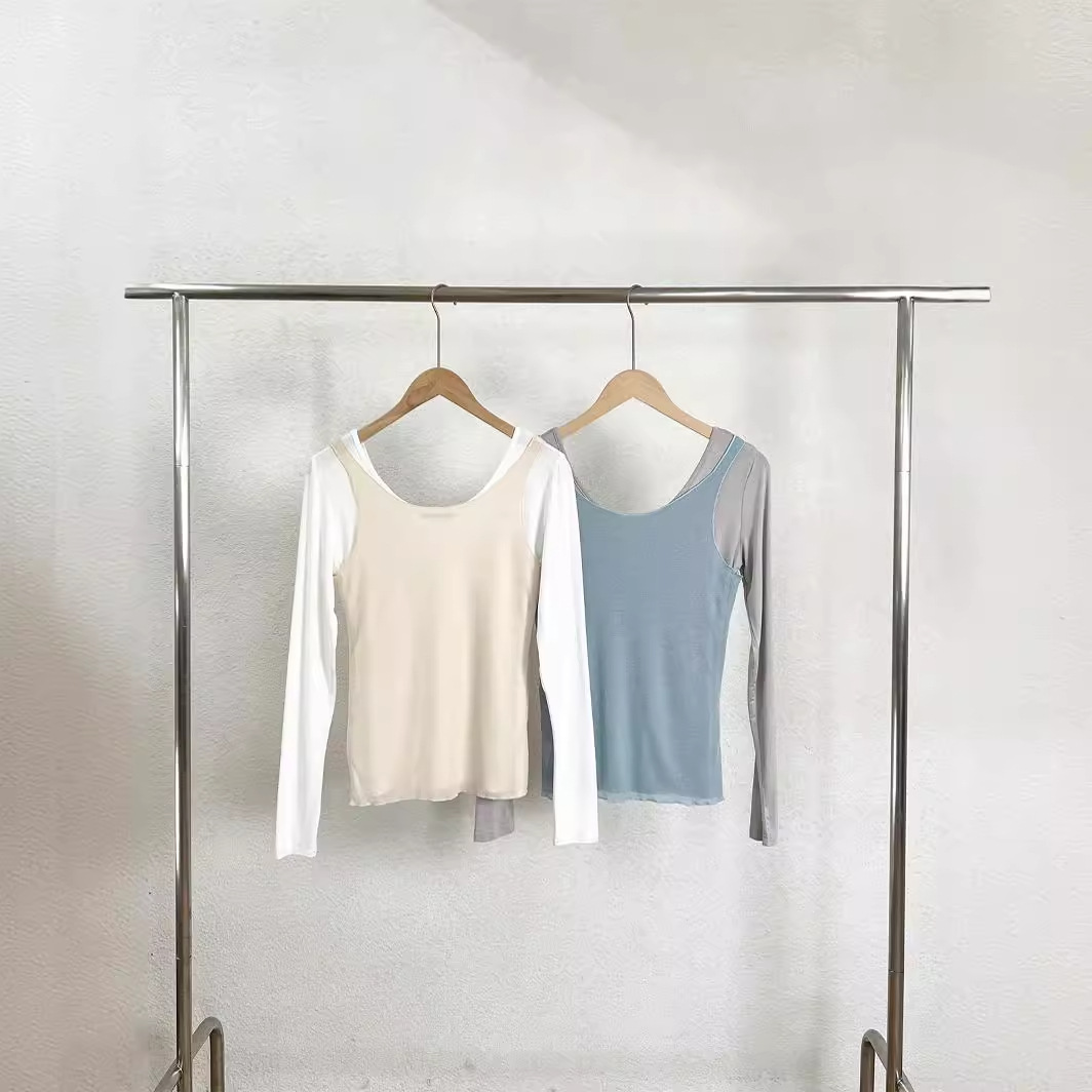 In stock 2024 spring new Korean style fashion casual stacked U-neck all-match base suit 2S24SS15