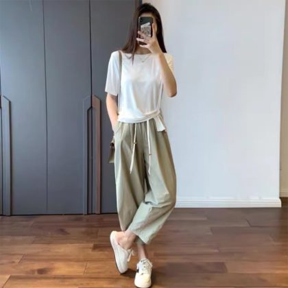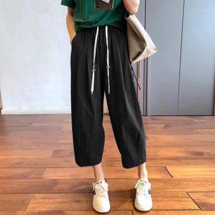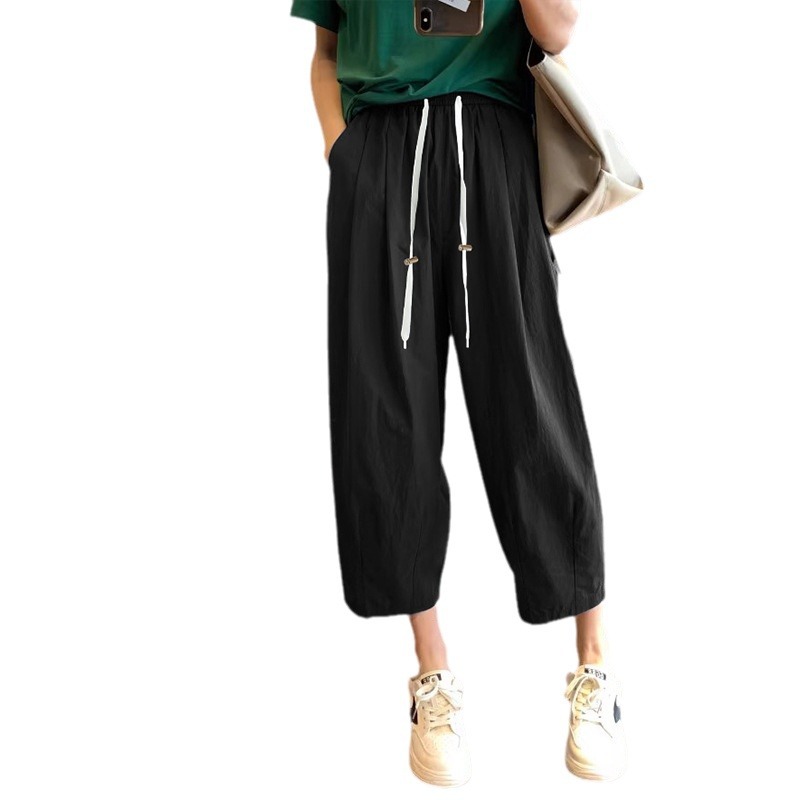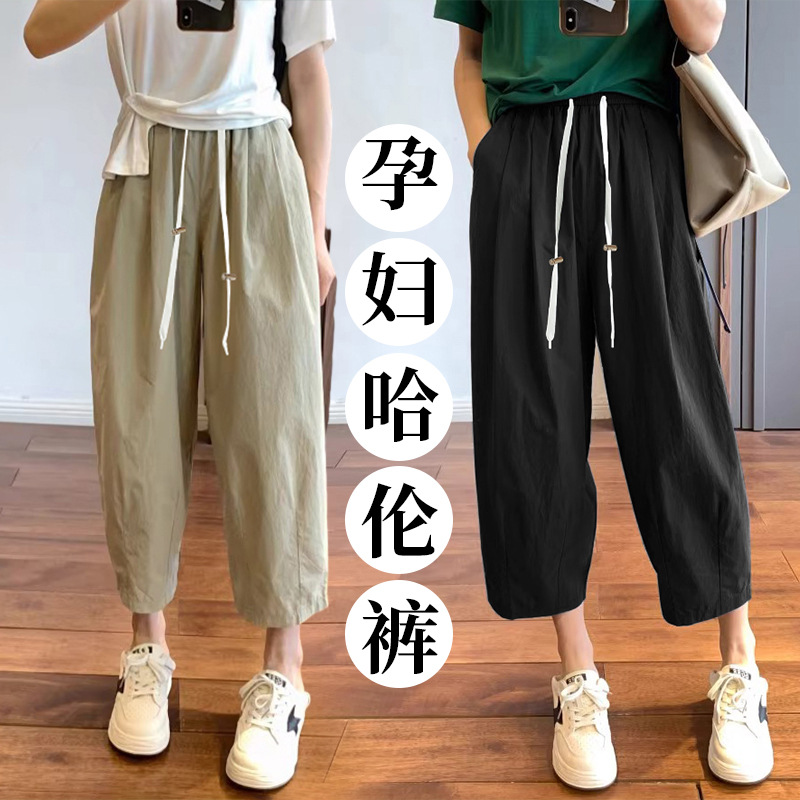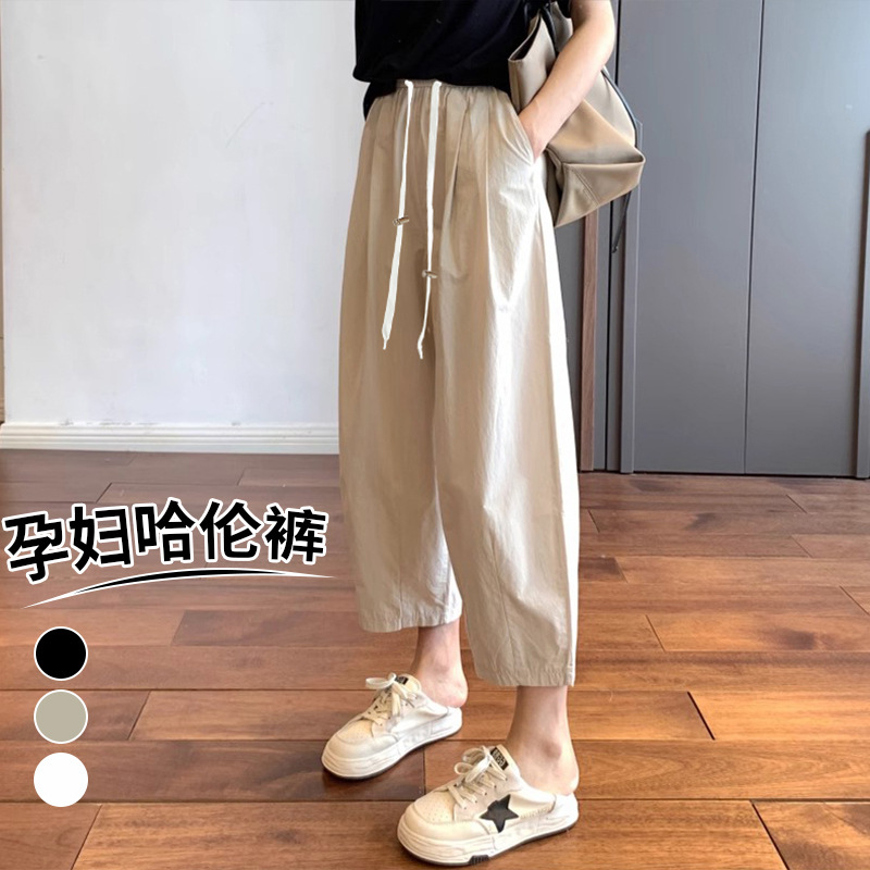 in stock 2024 Summer Ice Silk Cotton and Hemp Yamamoto Pants Harlan Pants Slimming Drawstring Wide-leg Pants Pregnant Women Ankle-length Pants