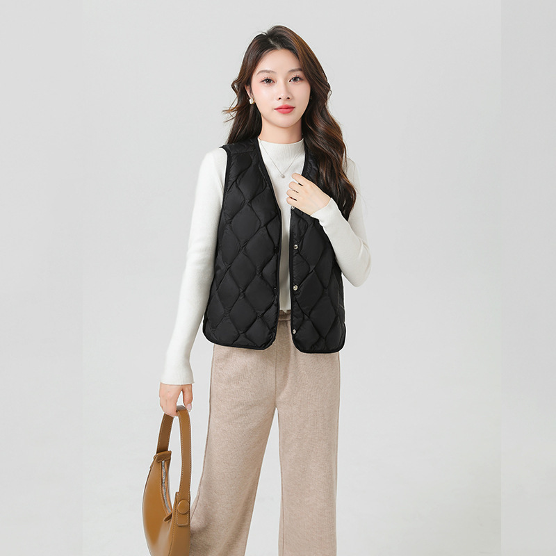 | nameOriginal | in stock 2024 Winter New Cloud Women's Vest 90 White Duck Down Women's Light V-Neck Waistcoat Inner Tank |