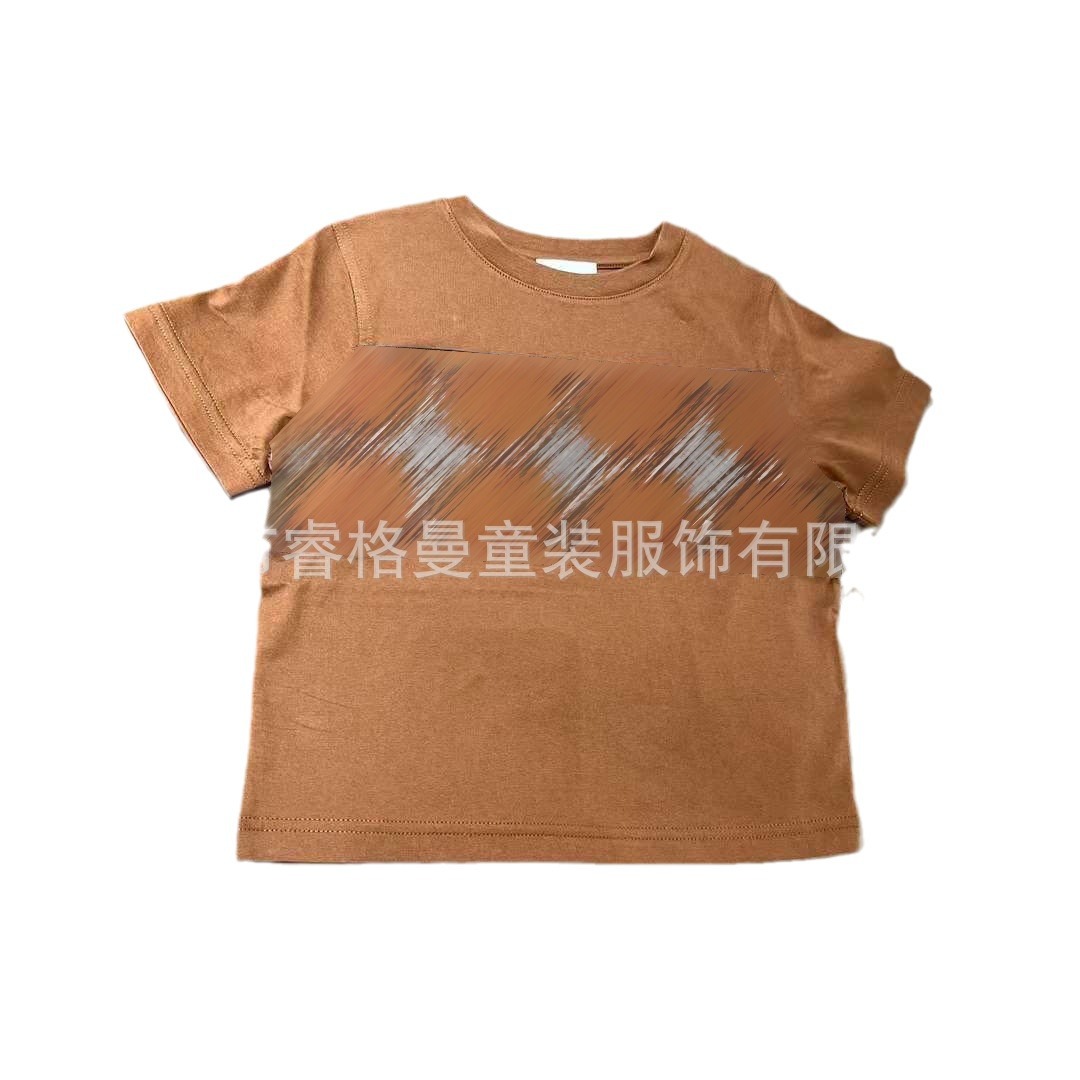 | nameOriginal | [In stock] 2024new khaki Plaid children's T-shirt versatile casual boys and girls round neck short sleeve t-shirt |