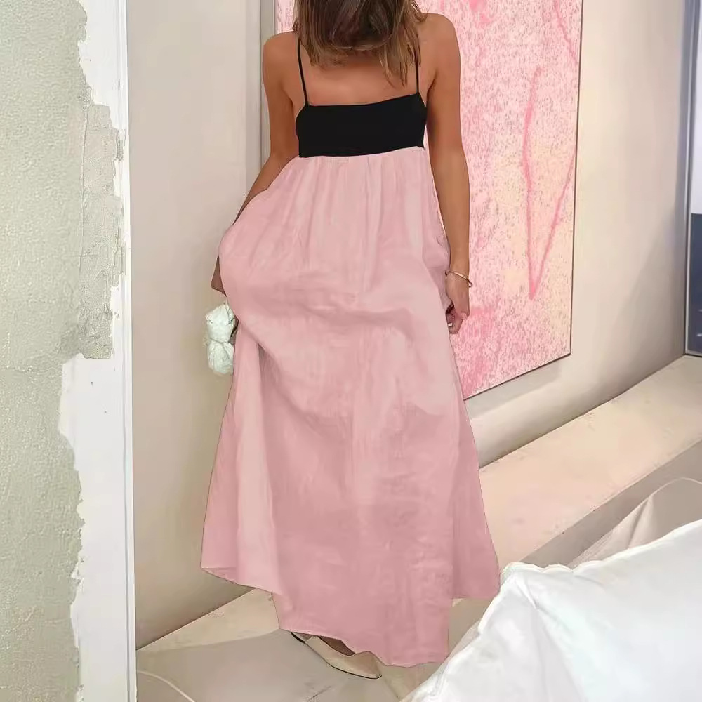| nameOriginal | in stock Amazon Ins European and American Style Summer Casual Contrast Color Strapless dress Women's Sling Cotton and Linen Vacation Long Dress |