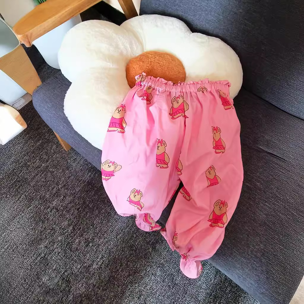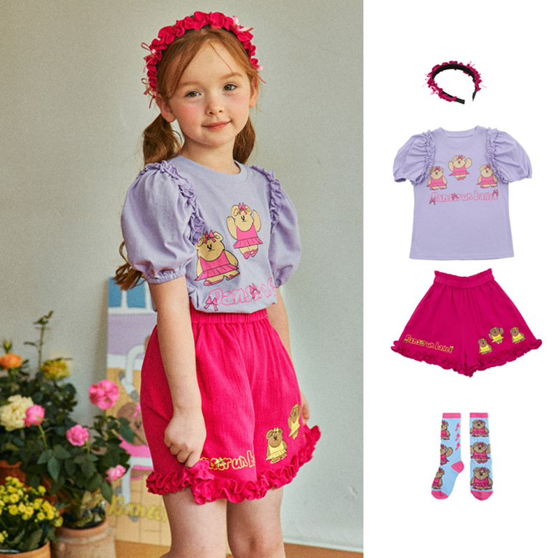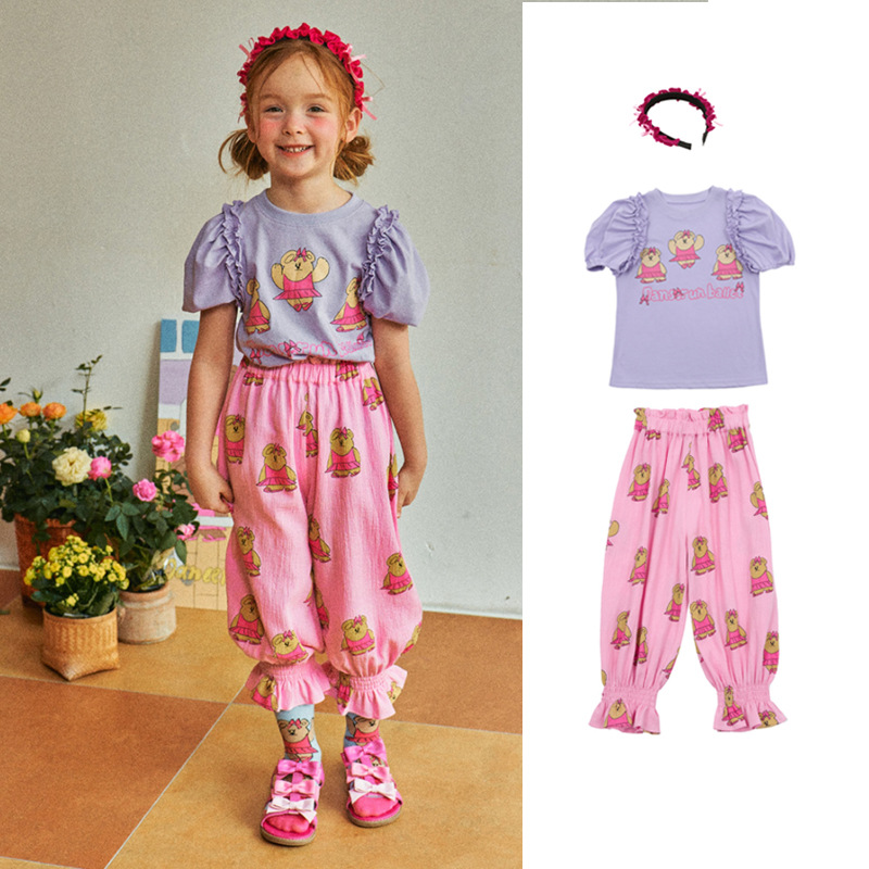 in stock! BE24 Summer New Korean Style Cute Ballet Bear Printed Short Sleeve Cotton T-Shirt Shorts Anti-mosquito Pants Set