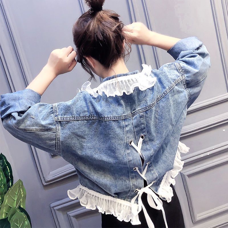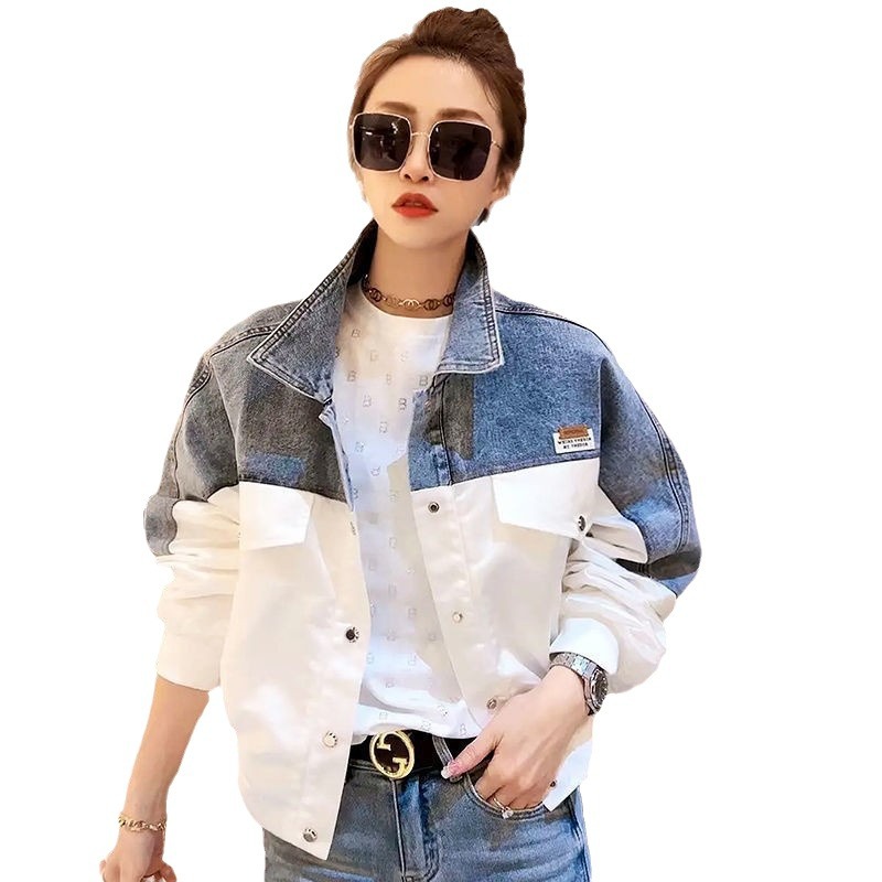 [in stock] Denim coat women's 2024 spring and autumn new stitching embroidered contrast color Denim clothes women's jacket tide