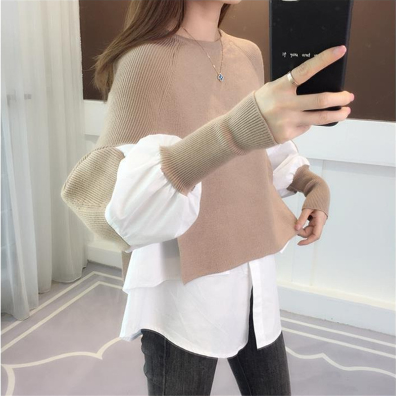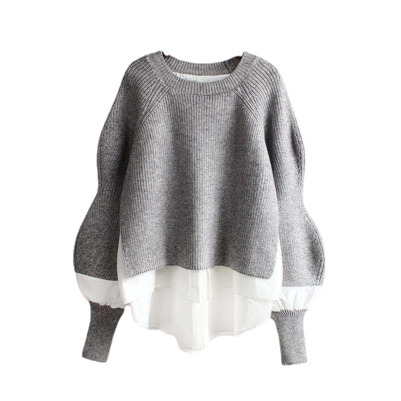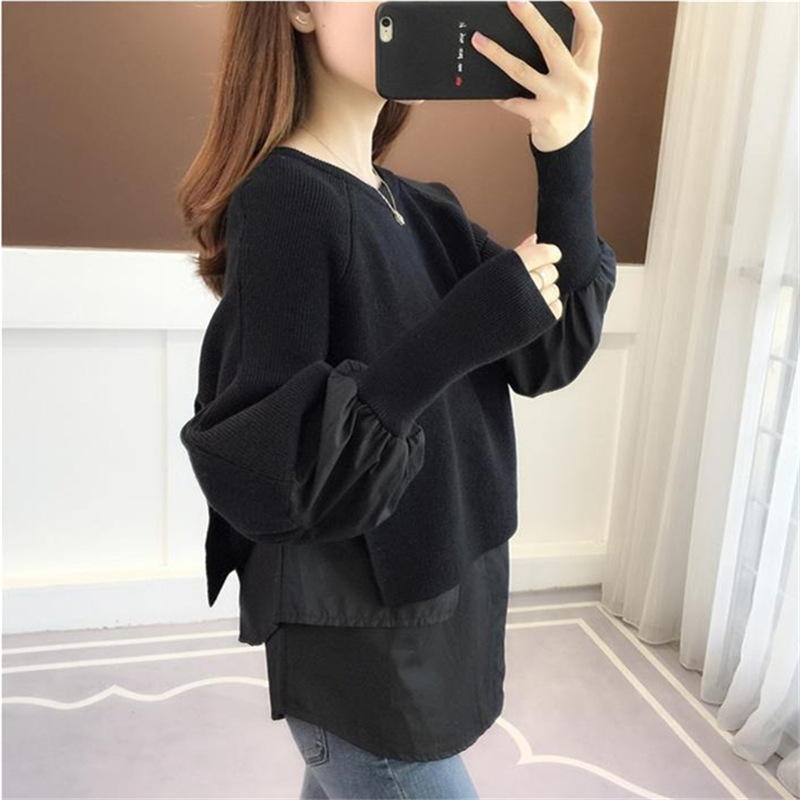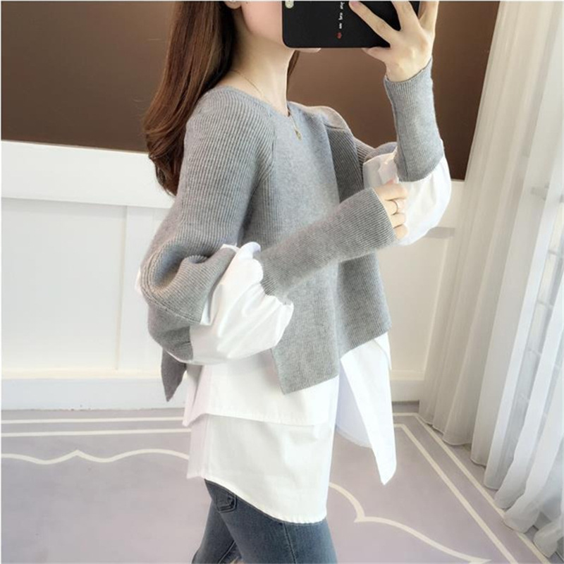 | nameOriginal | in stock Europe Station Autumn and Winter New Loose Pullover Knitted Sweater Sweater Crewneck Stylik Stitching Fake Two-piece Top Women |