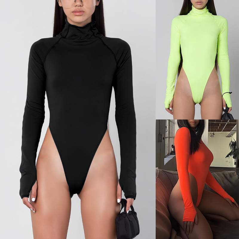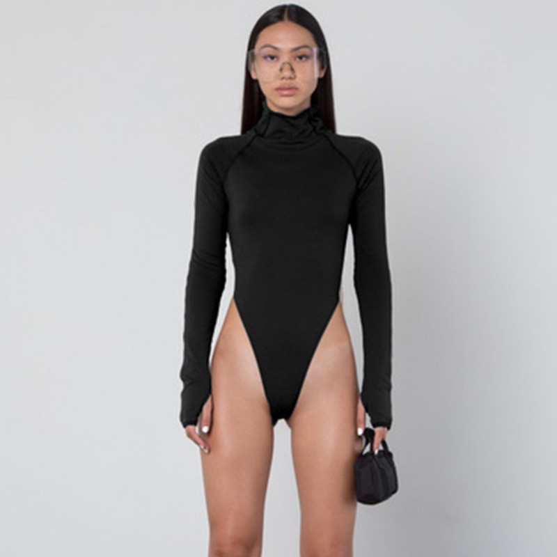 In Stock European and American AliExpress cross-border autumn and winter fashion trendy slim-fit slimming bottoming top turtleneck jumpsuit for women