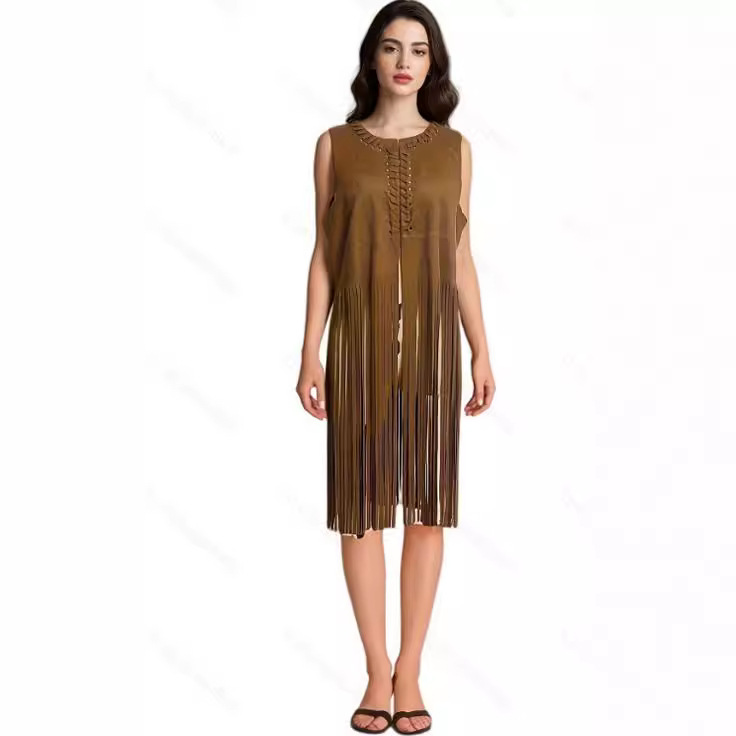 | nameOriginal | In Stock European and American style shawl suede tassel vest coat women's sleeveless mid-length vest outer wear |