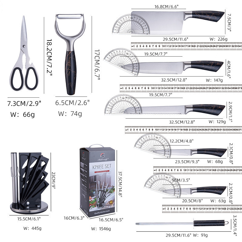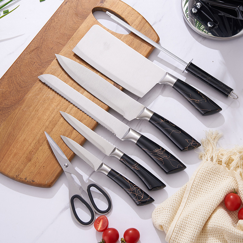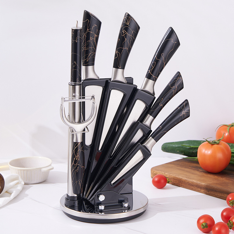 In stock foreign trade knife suit color stainless steel horseshoe hollow handle 8-piece set knife chef knife gift set knife