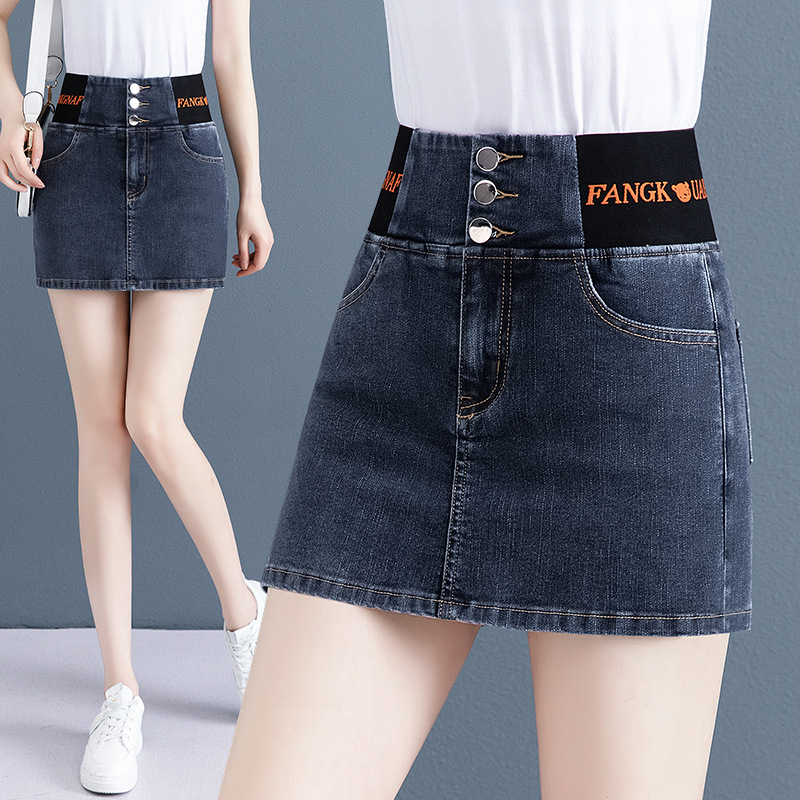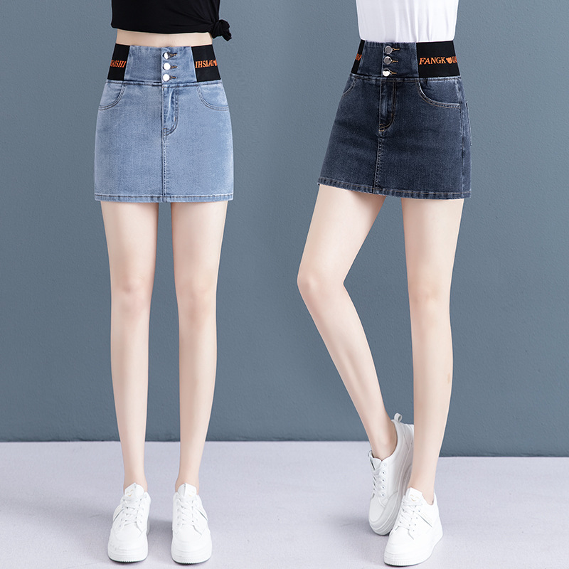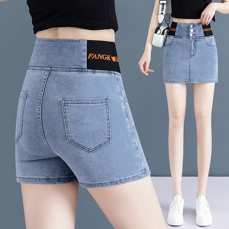 | nameOriginal | In stock generation elastic waist Denim short culottes women's 2024 Summer anti-exposure lining slimming pencil culottes |