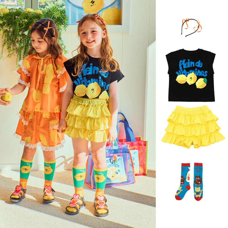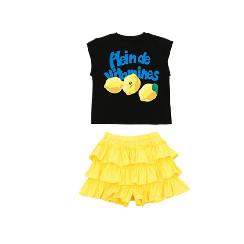 | nameOriginal | in stock! Girls suit BE24 Summer New Children Cute Lemon Sleeveless Cotton T-Shirt Shorts Cake Skirt |