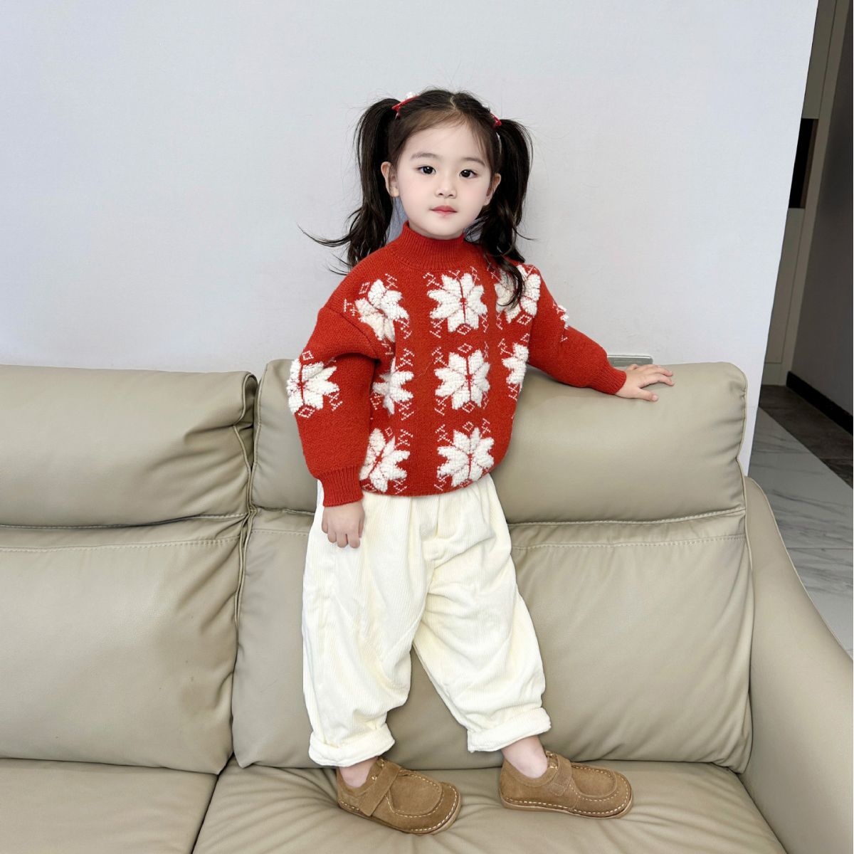 | nameOriginal | [In stock] girls' sweater 2023 autumn and winter New Korean style children's half turtleneck sweater baby Christmas top |