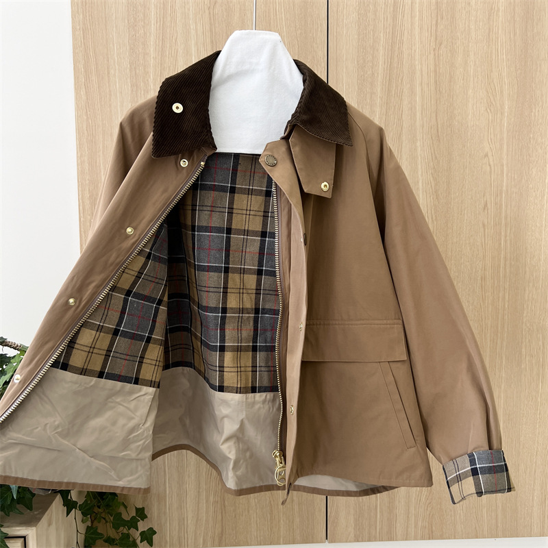 | nameOriginal | In stock Hong Kong style corduroy lapel zipper workwear style short long sleeve trench coat 8206 |