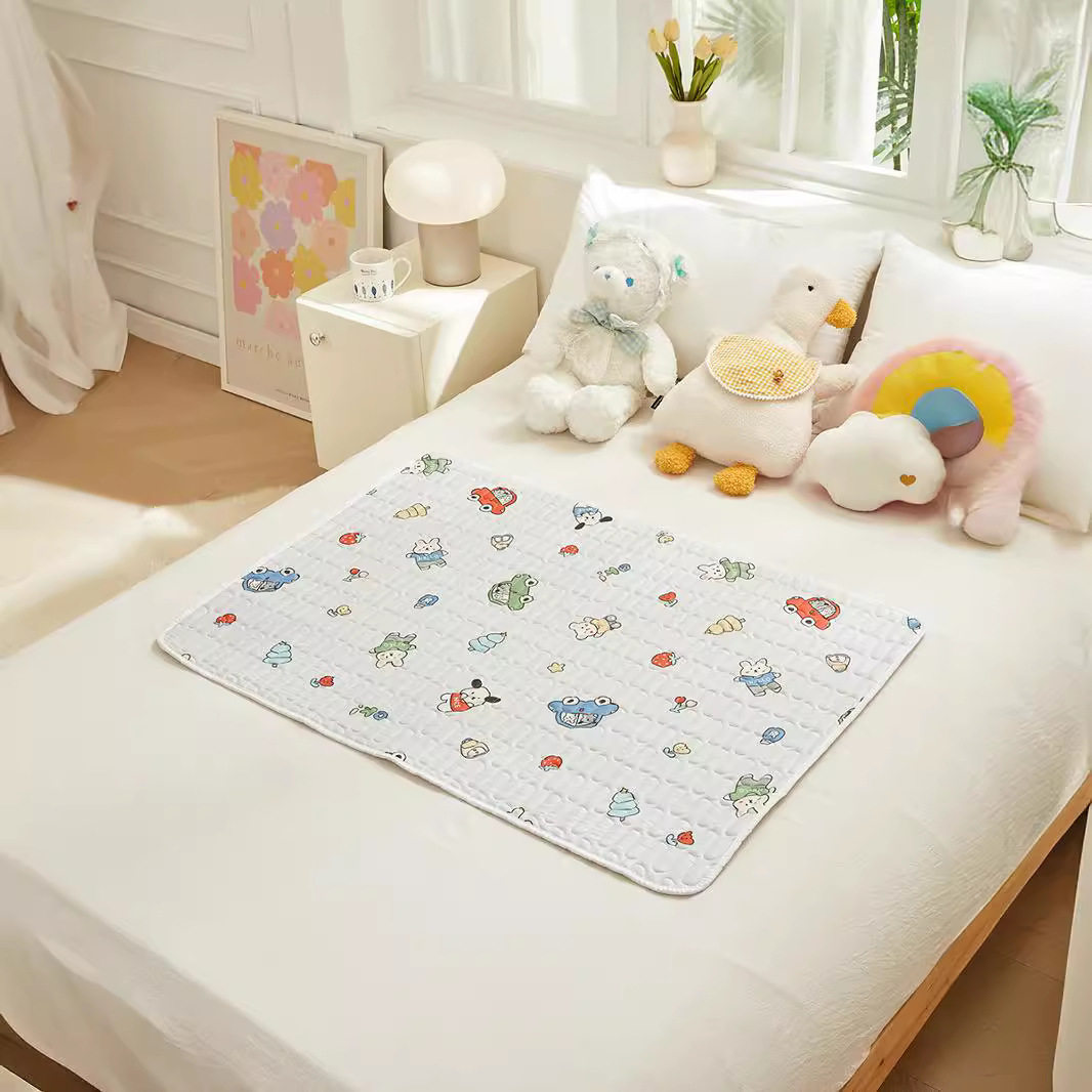| nameOriginal | In stock knitted cotton material aunt pad latex particles cartoon cute baby diaper pad towel four seasons universal wholesale |