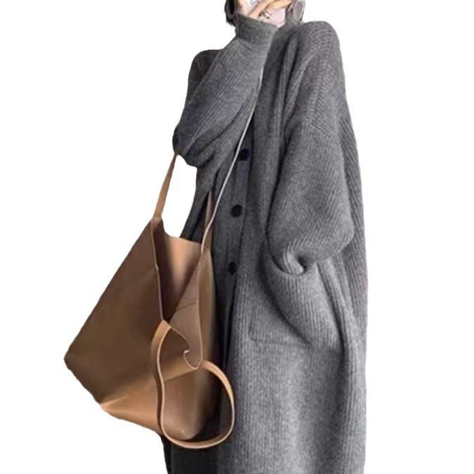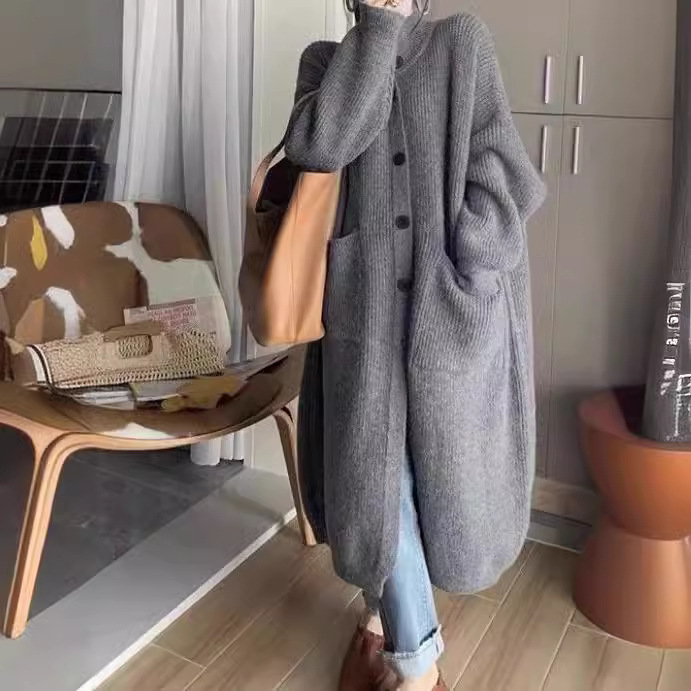 | nameOriginal | [in stock] Korean lazy wind lapel sweater women's single-breasted solid color long sleeve knitted cardigan long coat |