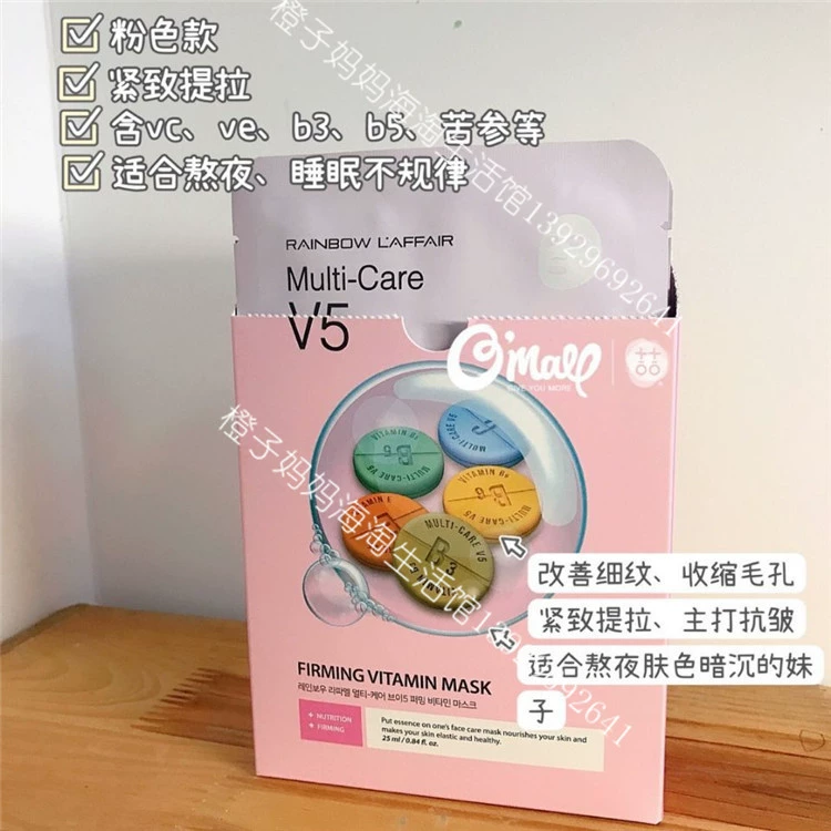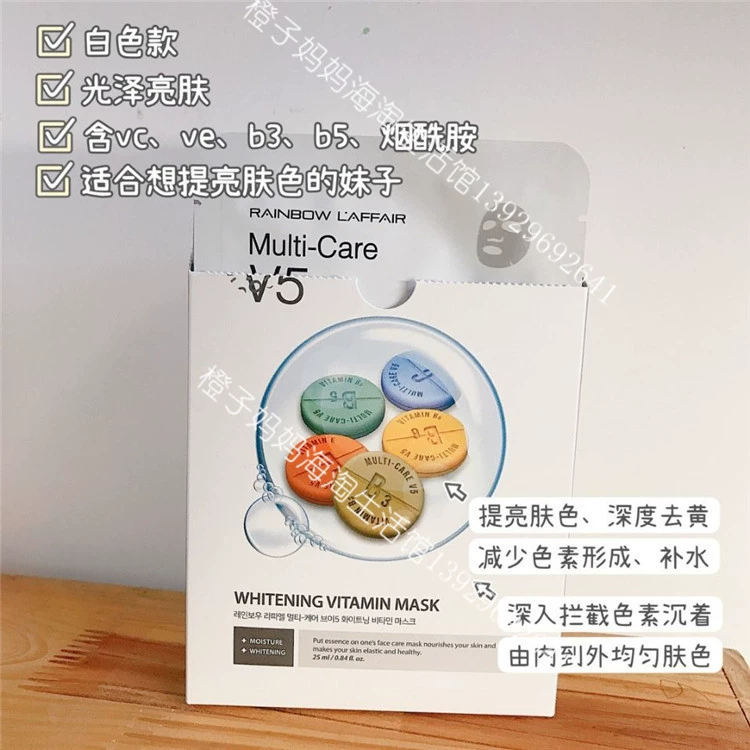 | nameOriginal | In stock Korea's native Rainbow Rainbow Lefeier V5 vitamin hydrating, brightening and beautifying mask 10 pieces |