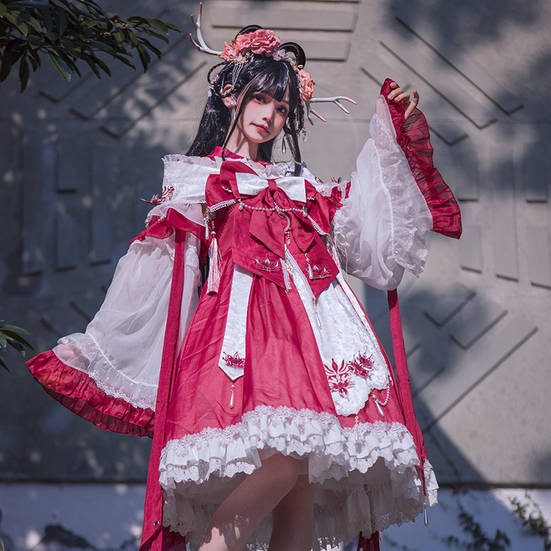 | nameOriginal | [in stock] Leopard has a cat original antique lolita deer and epiphyllum FS full set of sling dress |