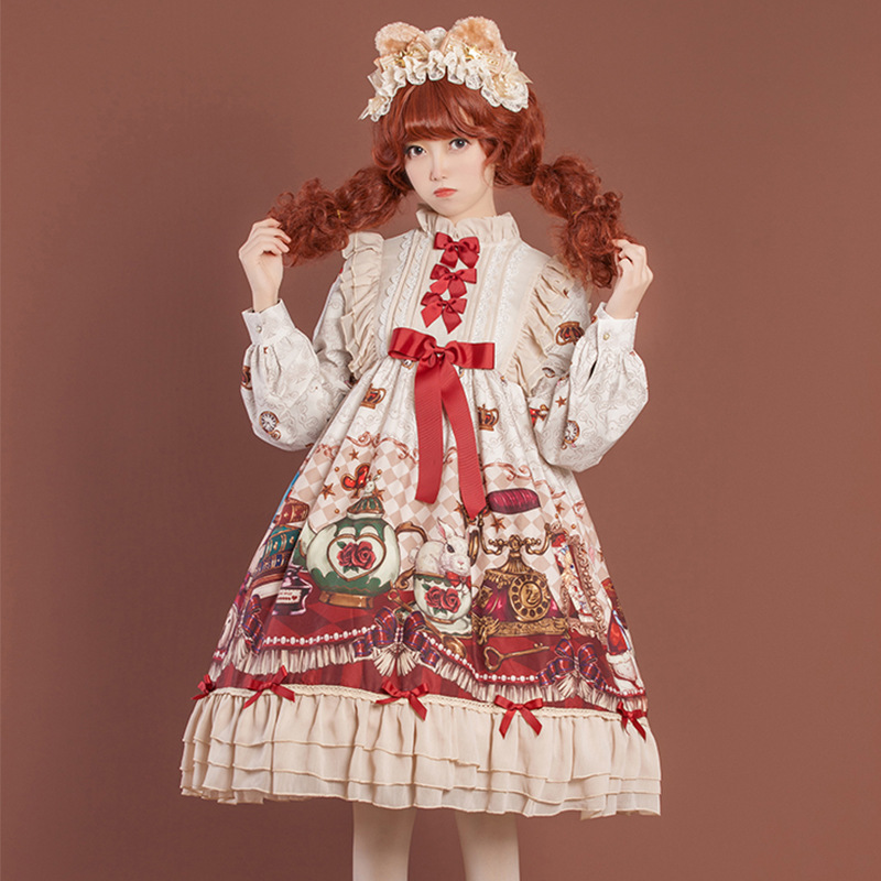 [in stock] Leopard has a cat original lolita crown bear OP cute loose daily dress