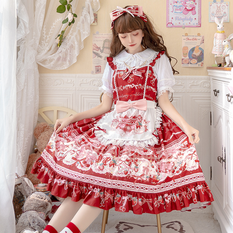 [in stock] Leopard Made a Cat Original lolita Rabbit Fried Berry Cute Daily Rabbit Fried Berry Lolita Clothes